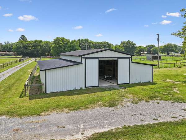 Est $4,919/moCome see this recently renovated beauty in Shelbyville! Set on just over 48 acres. It's a mix of fenced pasture with pond. There is an 5 stall barn with water, wash down bay and tack room. Lean-to used for cattle, lean used for equipment and utility shed behind home on property. The previous owner raised cattle on the land. The entrance to this home is a stunner with vaulted ceilings and beams across. It opens to a new kitchen, beautiful slab island and lighting. The home also has updated bathrooms, a huge pantry, 2 car garage, a screened in sunroom and a glass sun room, perfect for all of your tropical plants and flowers to have a spot for the winter.