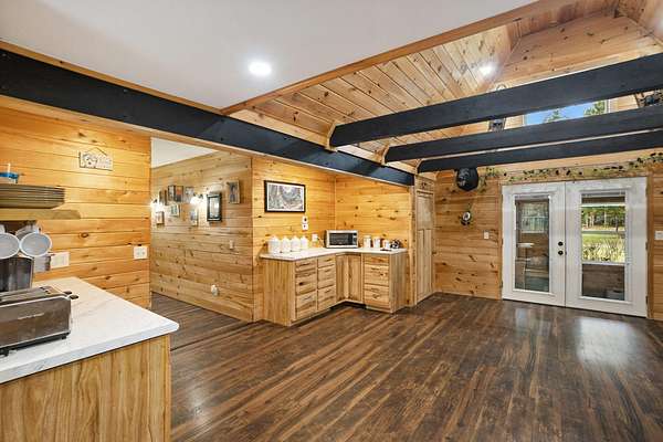 - Ceiling Fan(s), Center Island, Eat-In Kitchen, Garage Door Opener, Guest Quarters, Hot Tub Spa, Pantry, Wet Bar