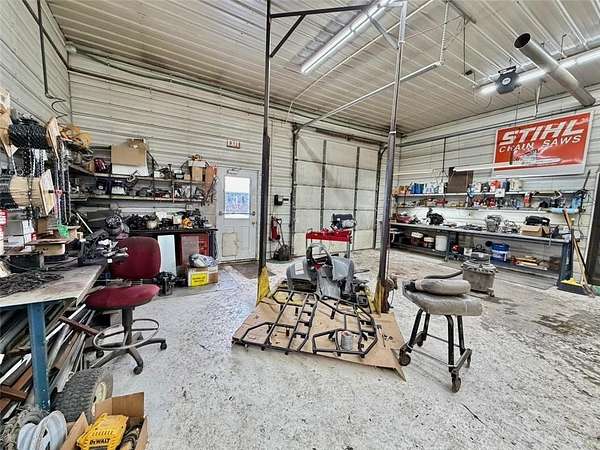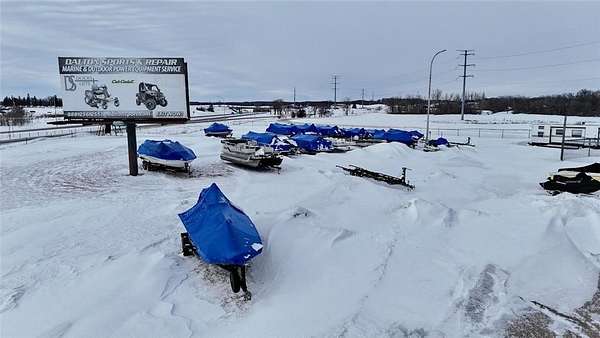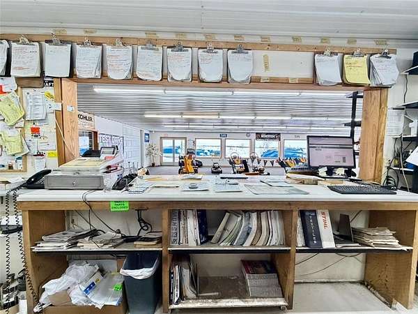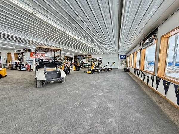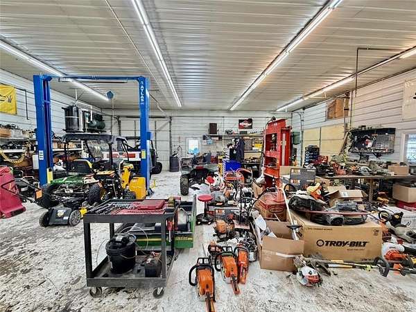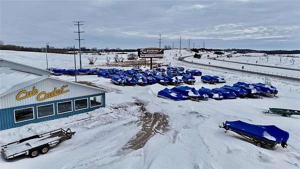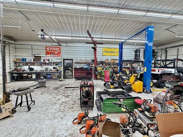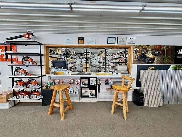 The property includes approximately 4,900 square feet of shop space and 3,048 square feet of retail, office, and parts space, along with additional storage buildings located behind the main facility. Additional revenue streams include boat and pontoon winterization, shrink-wrapping services, and secure outdoor winter storage. Seasonal inventory features Cub Cadet mowers and snowblowers, as well as Stihl chainsaws and related equipment.