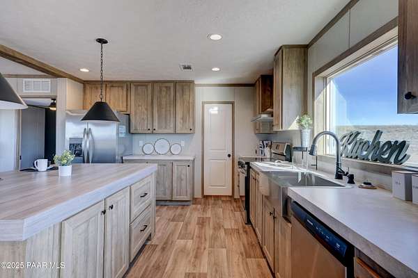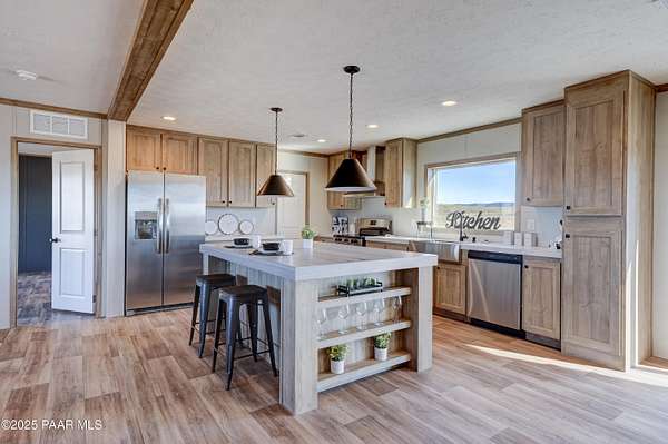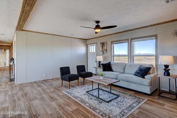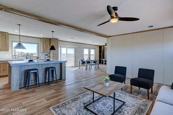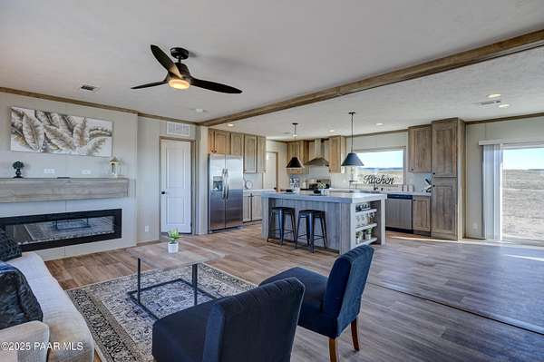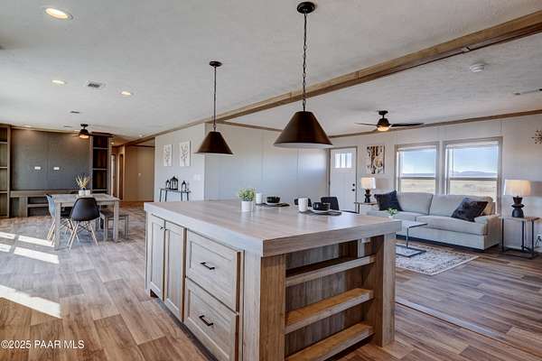 Experience the freedom of wide-open living in this move-in ready, farmhouse-style home nestled on 2 acres of scenic Paulden countryside. Offering 1,940 square feet, 4 bedrooms, and 2 full bathrooms, this home is thoughtfullydesigned with comfort and charm in mind. From the moment you enter, you'll appreciate the seamless flow between the open-concept living area, split floorplan and the stunning kitchen, complete with stainless steel appliances, a deep farmhouse sink, expansive island, pantry and impressive 45'' tall cabinetry.Relax beside the sleek electric fireplace, entertain in the formal dining room, or retreat to the private primary suite where you'll find a luxurious soaking tub, double sinks, walk in closet and a glass-enclosed walk-in shower. A dedicated office or den adds flexibility for remote work or study. The detached 24x24 two-car garage provides ample space for vehicles, hobbies, or storage.Whether you're looking for a rural retreat, a horse property, or simply more room to breathe, this partially furnished home offers a lifestyle of tranquility and space -- with beautiful views, room for animals, and the peacefulpace of country living.