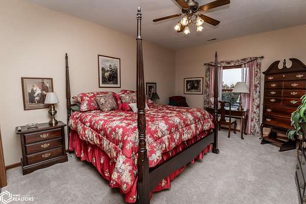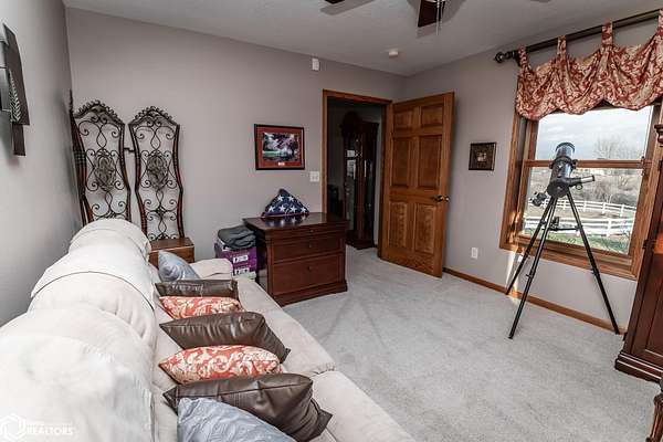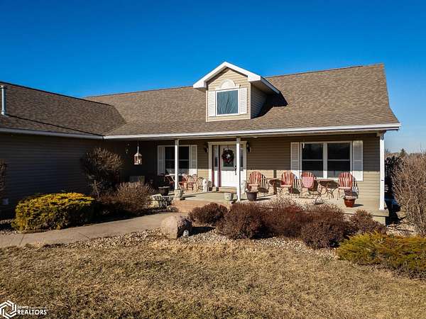 This BEAUTIUFUL newer built ranch-style home sits on just over 38.35 M/L fully fenced acres and offers 5 bedrooms, with potential for a 6th, and 4 bathrooms. The open-concept main level features a formal dining area and flows seamlessly into the living space, with access to a deck overlooking the scenic property. A fully finished walk-out basement provides additional living and entertaining space. The property includes a 56x42 horse barn, 3-stall garage, and a partial forest reserve offering privacy and natural beauty. Energy-efficient geothermal heating and cooling adds long-term comfort and savings. Conveniently located a short drive off the highway and close to Marshalltown. Call today for your private tour.