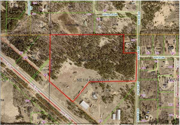 Exceptional 21-acre parcel located on the north edge of Pine River, offering incredible potential for residential or commercial development. 425' of frontage on 26th Ave SW offers a quiet entrance for housing development or private homestead. This versatile property also features prime frontage on a busy corridor ideal for commercial visibility and traffic with the direct access via 474' of frontage on Hwy 371 for commercial or industrial ventures. Property boasts rolling high ground studded with mature Pines and open level field setting the stage for an excellent opportunity to be split along the wood line creating a 7 acre open-field Commercial envelope and 14 acre wooded Residential site maximizing your return! Current zoning allows residential new splits down to 1 acre minimum. Whether you're looking to develop, invest, or build, this property presents an outstanding opportunity in a growing area with strong future potential. Don't miss this chance to secure a premier tract in a highly desirable location!