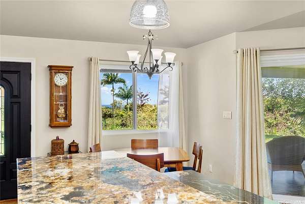 The buyer is trying to sell their home first. This newer 2023 custom built home boasting 3.131 acres of land is now available. Located along the Heritage Hamakua Coast. Having that country feel, while only being about 7 minutes from Old Hilo Town, and about 13 minutes from the Hilo International Airport. A total footprint is about 3308sqft, living space about 1344sqft, covered lanai about 1092sqft, carport and laundry area about 528sqft, and sidewalks about 300sqft. Newly built storage building about 528sqft. 3 bedrooms, 2 full bathrooms. The Kitchen, with an ocean view, highlights "Magma Gold" custom granite counter tops, custom mango/wenge cabinets, and plenty of storage space. Two full bathrooms with custom granite tops and custom mango/wenge cabinets that gives a nice Hawaiian feel. Sliding glass doors in both the primary bedroom and living room have direct access to the large, covered lanai/patio with plenty of room for a hot tub, BBQ and lounge chairs with views of the ocean. Enjoy paradise! All comments, data is provided by seller.
