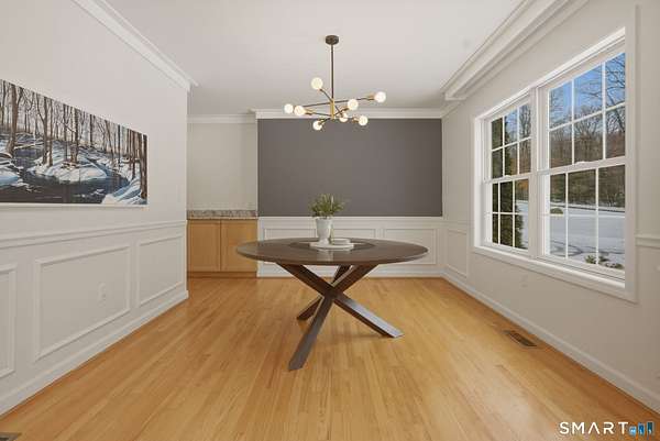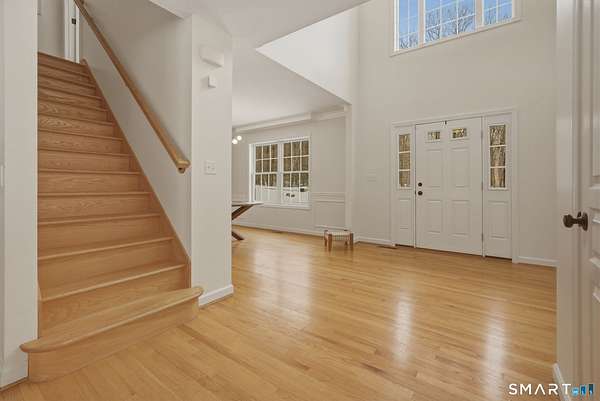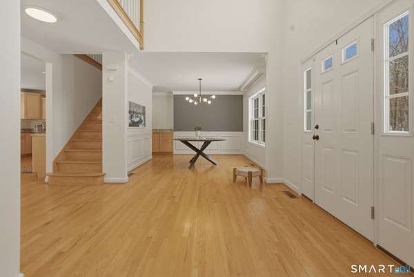 Impeccably maintained 4-bedroom, 2.5-bath Colonial built in 2013, offering 2,600 sq ft plus 750 sq ft of finished lower-level space on 2.99 private acres in a sought-after neighborhood setting. A dramatic two-story foyer, hardwood floors throughout the main level, custom millwork, and curated built-ins set this home apart. The designer kitchen features granite countertops, new stainless appliances, gas range, tile backsplash, and dedicated coffee station. Finished lower level with dry bar adds exceptional entertaining space. Complete with central air, Nest thermostats, 2-car garage, deck, patio, and Kloter Farms shed. A rare blend of privacy, craftsmanship, and neighborhood appeal.
