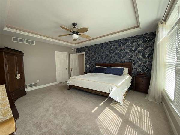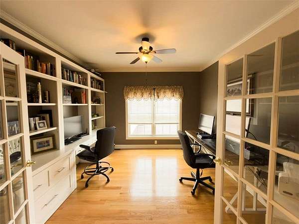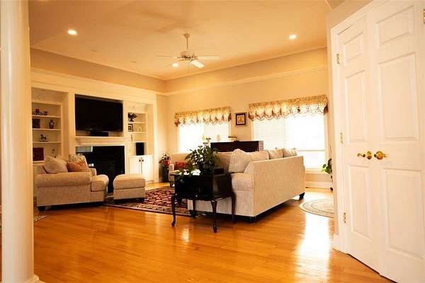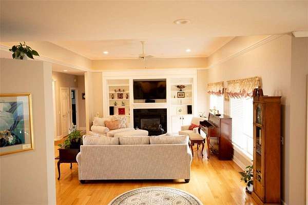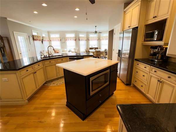 - Bath In Primary Bedroom, Breakfast Area, Breakfast Bar, Ceiling Fans, Den, Eat In Kitchen, Entrance Foyer, Granite Counters, Jetted Tub, Kitchen Family Room Combo, Kitchen Island, Main Level Primary, Pantry, Programmable Thermostat, Skylights, Walk In Pantry, Wet Bar, Window Treatments
