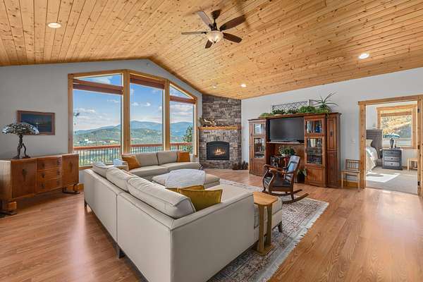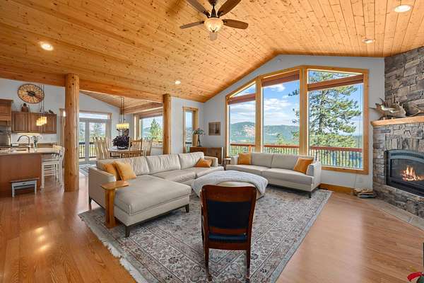 Escape to this enchanting 3-bedroom, 2.5-bath home overlooking breathtaking Lake Roosevelt. Nestled on 20 acres bordering the Colville National Forest. This property offers the perfect blend of tranquility and adventure. As you step inside, you'll be greeted by an open-concept living space filled with natural light and panoramic views of the lake. The spacious kitchen features modern appliances and ample counter space, perfect for entertaining friends and family. Cozy up in the inviting living room by the fireplace, or step outside to your expansive deck, ideal for watching sunsets over the water. The primary suite boasts an en-suite bath. In basement there are additional bedrooms with a family/ game room. This home is move in ready. Schedule your Showing today!