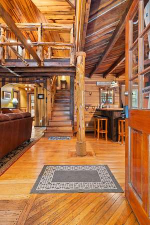 - Modern Log-Style Home (Built 2017) — Built with precast concrete logs for durability and efficiency, featuring white northern pine interior walls and bamboo flooring for an upscale rustic feel.