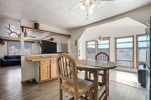 Tranquil retreat set on 5.52 rolling acres in the peaceful countryside of La Jara. Rustic charm and modern comfort, making it an ideal investment opportunity or a personal sanctuary. Enjoy fishing for trout in the La Jara creek,that runs through the property, while the deer and elk roam the meadow. Home features 1,854sf with 3 bedrooms, 2 bathrooms and 2 living spaces. Beautiful laminate wood floors in the spacious main living area with picture windows showcasing the stunning views. Galley kitchen with ample cabinet and countertop space, range, refrigerator and microwave. Washer and dryer included. Owners suite with walk-in closet and private bath. Located in game management Unit 6A. horses and farm animals permitted!