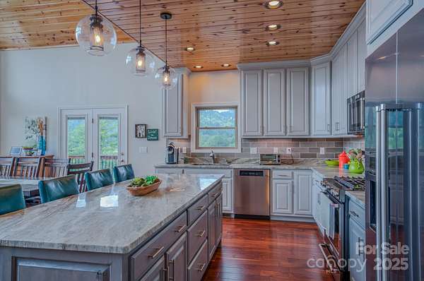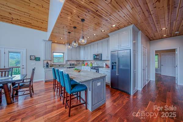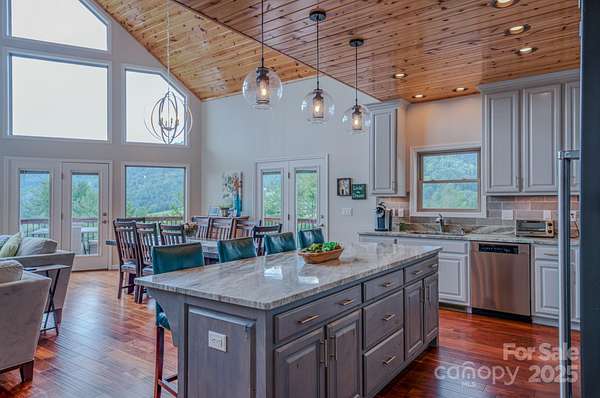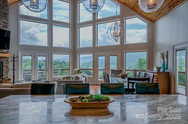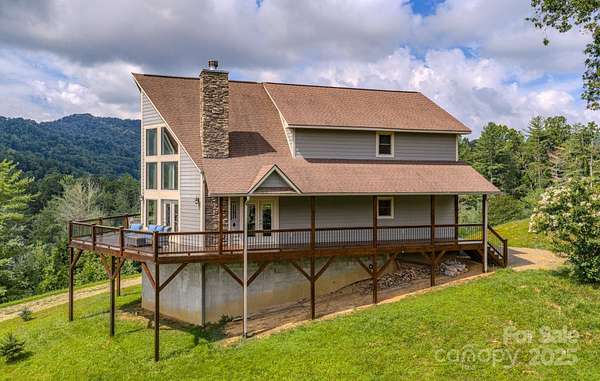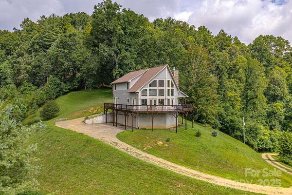 Come discover the perfect blend of mountain charm, amazing mountain views and modern conveniences in this custom-built home tucked into the serene landscape of the Blue Ridge Mountains in Burnsville! Built in 2018 and sitting on approximately 14.93 private acres, this property offers not only comfort and craftsmanship-but also room to grow. Some interior highlights include: floor to ceiling windows to take in the amazing mountain views, acacia wood floors, vaulted pine ceilings, an open concept floorplan, a whole house generator, dual zoned HVAC, architectural shingle roof, leaf guards on gutters, granite counters, and a tankless water heater. The basement can house 4 cars easily and has high ceilings. They are several potential building sites for a possible guest home, a workshop or even future development. Located minutes from the small but growing town of Burnsville and only 45 minutes to Asheville. Large wrap-around deck stained 8/2025. Easy access off 4 lane highway. Gravel driveway is approximately 0.40 miles. Absolutely no visiting the property or driving up the property without a showing appointment set by real estate agent.