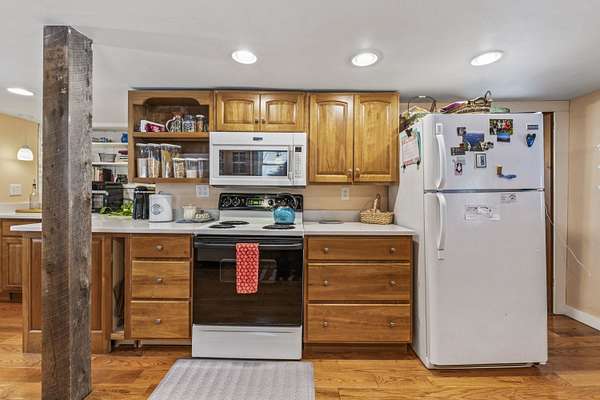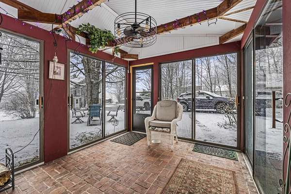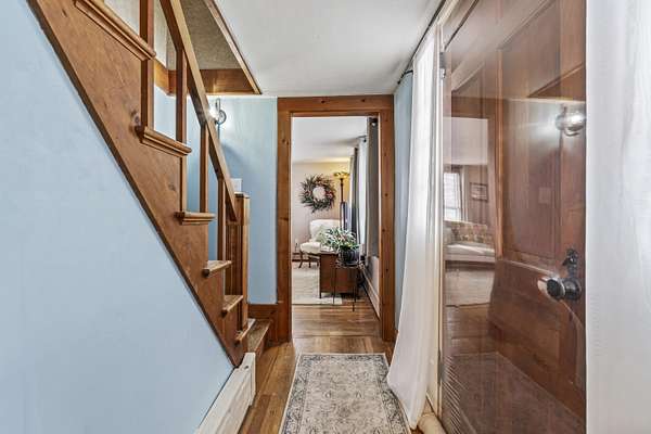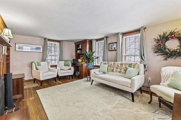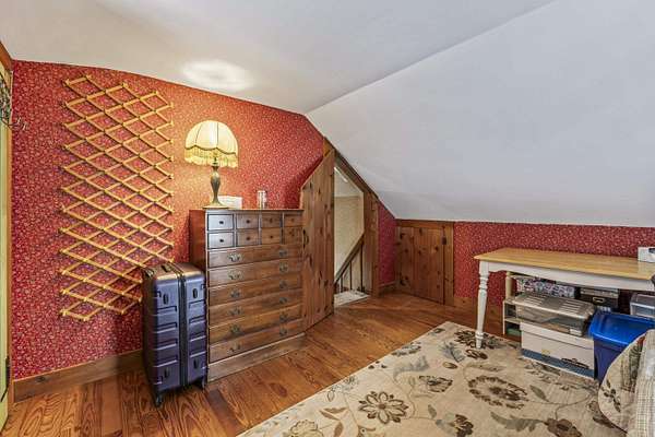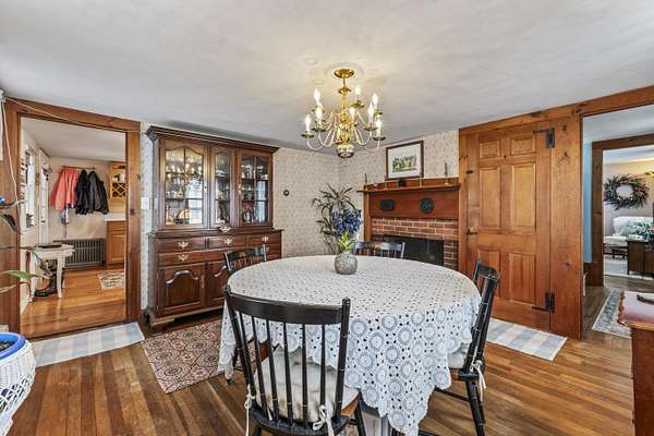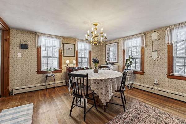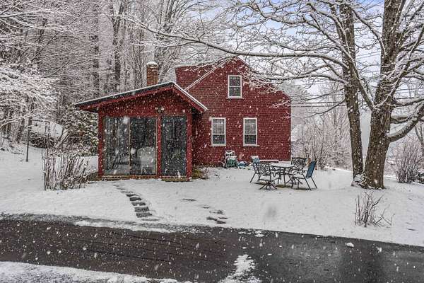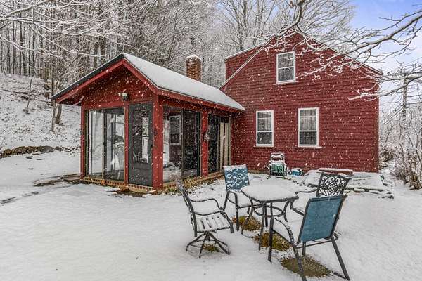Welcome to the Pelatiah Hanscom House at 27 Depot Pond Road, nestled in the charming town of Milton, NH. Just minutes from Route 16, this location is ideal for Seacoast commuters who crave the privacy of rural living without the isolation. Built in 1804, this antique cape embodies the timeless charm of Early American architecture — including its characterful 6'7" ceilings. Step inside through the three-season sunroom, where bug-free summer evenings give way to cozy winter days watching the snow fall, warmed by the glow of a wood stove. The kitchen is a pleasant surprise — remarkably spacious for a home of this era, with an abundance of counter space anchored by brand-new quartz countertops. The living room and dining room are both generously sized, each anchored by its own hearth. A half-bath completes the first floor. Upstairs, two bedrooms offer built-in closets and custom storage tucked into the eaves — perhaps the cleverest use of Cape knee-walls you'll ever see. The full bath is an unexpected delight, centered around a deep soaking tub. Outside, over eight acres of land invite you to hike, garden, and explore, with beautiful views of Depot Pond throughout. A detached garage overlooks a babbling brook — the perfect setting for a creative workshop or studio. With the town beach and Teneriffe Mountain just a stone's throw away, this home is a rare gem for anyone seeking authentic New England charm. Showings begin at the open house on Friday, April 17th from 4:30-6pm. Second open house on Saturday from 10:30-12pm. See you there!