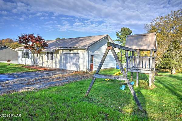 Enjoy easy one-level living in this charming 2-bedroom, 1-bath ranch in Beach Lake! Situated on 3.69 acres on a private road with no homeowners association, this property offers a quiet and peaceful setting to call home. Featuring a spacious open floor plan, eat-in kitchen, inviting living room with a large picture window, convenient main-level laundry, and an attached 1-car garage. The coal stove provides a secondary heating option, while the metal roof and newer water heater offer peace of mind. Relax on the back deck overlooking a large, partially wooded yard everyone will enjoy! The full basement and large attic provide plenty of storage space. Located just minutes from Narrowsburg, NY, and Honesdale--this is the perfect home for those seeking convenience and a peaceful country lifestyle!