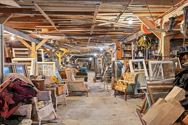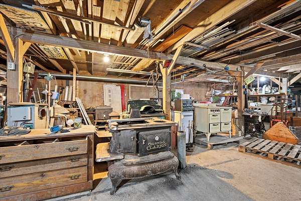 Step into a truly unique piece of Maine charm at 27 Hawes Bridge Road, set on 5.50 acres. This one-of-a-kind property offers a rare blend of character, history, and potential for creative living or business use. The main structure offers an impressive 160' x 60' footprint across three levels, plus an additional attic--providing exceptional space for customization, whether for living, working, or creative pursuits. The property is equipped with 400 amp electrical service, offering ample power capacity for residential, commercial, or workshop needs. At the rear of the property you'll find a 52' x 12' attached workshop creating the perfect setting for artisans, hobbyists, or storage. Outside you'll enjoy the peaceful surroundings from the separate 10' x 16' cabin. Already insulated, sheet-rocked, insulated, wired, and plumbed - just waiting for your finishing touches--connect to power or embrace off-grid living. Nature enthusiasts will love the setting, with approximately 500± feet of frontage on Hawes Stream--home to native brook trout. The charming ''chicken barn'' includes a well, septic system, forced hot air furnace, and active electricity. While it could benefit from TLC, it offers solid bones and incredible potential - bring your vision and breathe new life into this unique space. Adding to the property's distinctive appeal, all contents both inside and outside will convey with the sale. Step back in time with a remarkable collection of antiques, including vintage stoves, doors, furniture, lamps, cabinet hardware, and more. The second floor is even set up for a potential antique shop - ideal for collectors or entrepreneurs. Whether you're looking for a creative retreat, a unique homestead, or a property with business potential, this is an opportunity you won't want to miss.