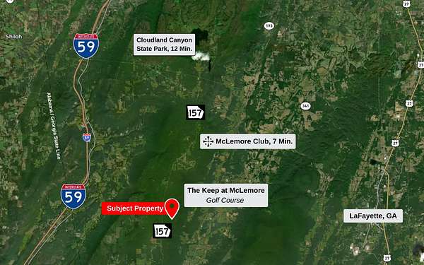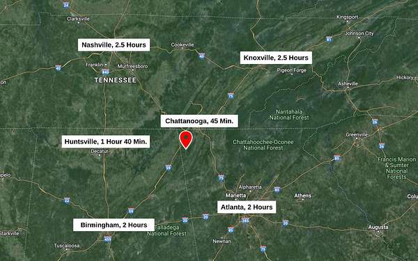 24 minutes to I-59 and 45 minutes to downtown Chattanooga. Create your own slice of paradise on Lookout Mountain - where nature's beauty meets endless opportunity. Schedule your private tour today!