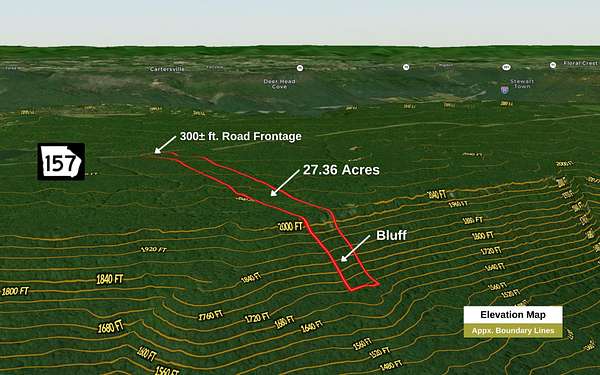 From Downtown Chattanooga: Take Broad St toward St. Elmo. Take slight left onto Tennessee Ave. In 15 miles, turn right onto SR-136. In 4.5 miles, turn left onto Highway 157. In 10 miles, property is on the left.