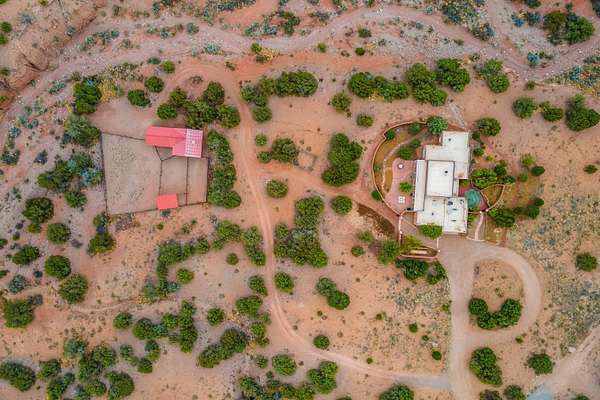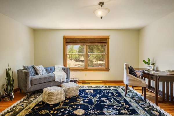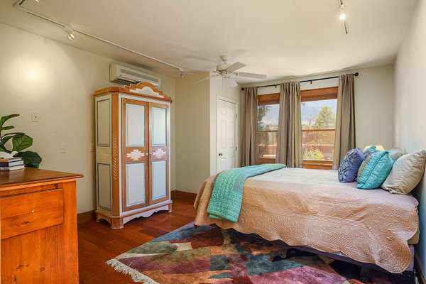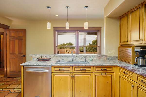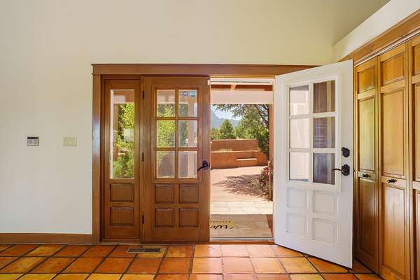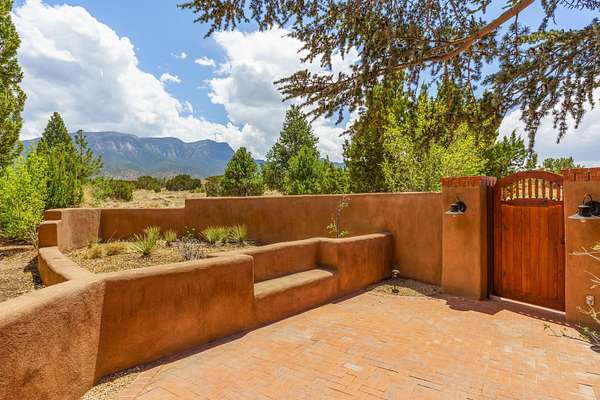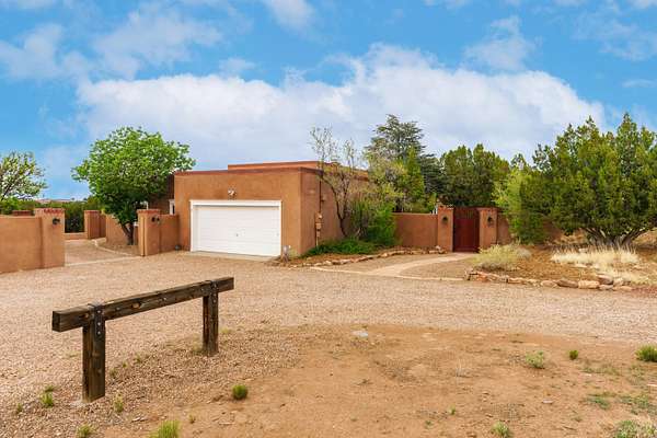 I-25 to Placitas exit. East on NM State Hwy 165 past The Merc to the 2nd Homesteads Lane and turn left to number 27. Circle drive to the courtyard gate.