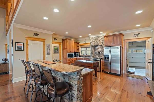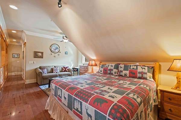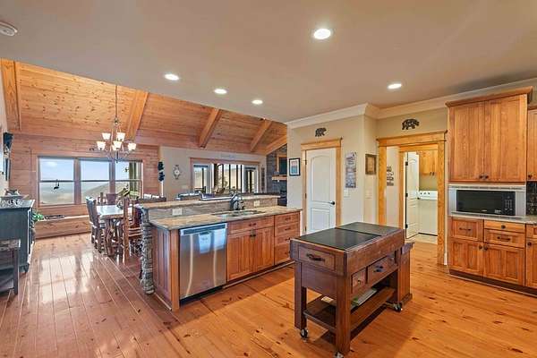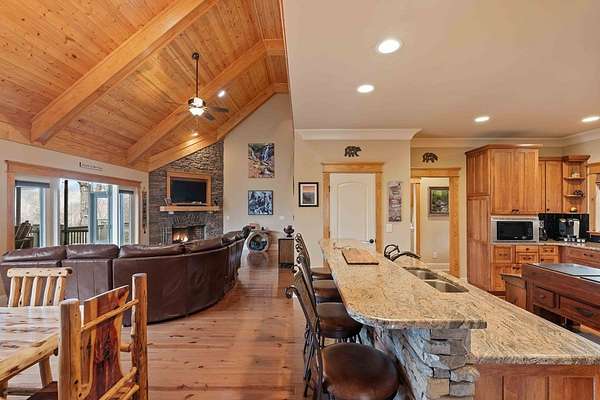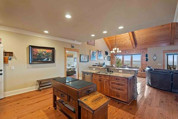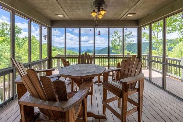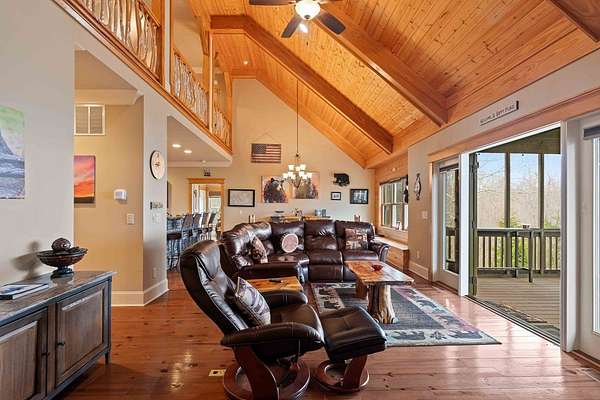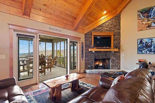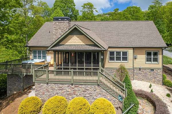 Panoramic Long-Range Smoky Mountain Views | Private Ridge-Top Retreat in Alarka Highlands Enjoy breathtaking long-range Smoky Mountain views and unforgettable western sunsets from this beautifully maintained private ridge-top retreat in Alarka Highlands. The open floor plan features vaulted ceilings, hardwood floors, and a dramatic floor-to-ceiling stacked stone fireplace, with large windows framing the surrounding mountains. The kitchen offers granite countertops, stainless appliances, and a large island flowing into the living and dining areas. A screened-in porch is perfect for enjoying cool mountain evenings and sunset views. Highlights: Long-range Smoky Mountain views Screened porch Trex decking Oversized 2-car garage Whole-house generator (2 yrs) Paved driveway Landscaped yard Attic storage Adjoining lot w/ 3BR septic permit Offered fully furnished and ready to enjoy. A rare opportunity to own a private Smoky Mountain view retreat with unforgettable sunsets. 360 Tour: https://my.matterport.com/show/?m=dMEhyDZvFwd