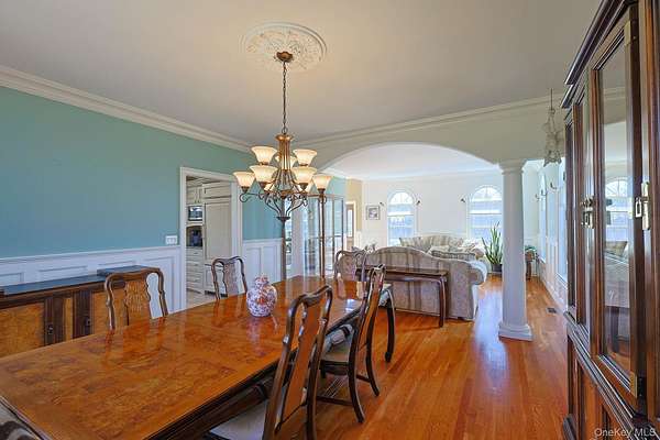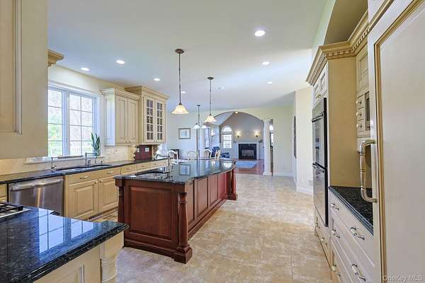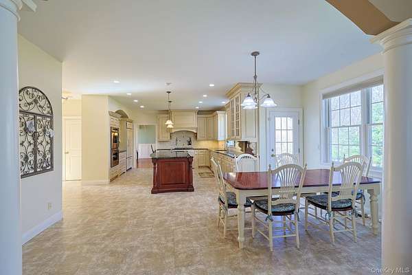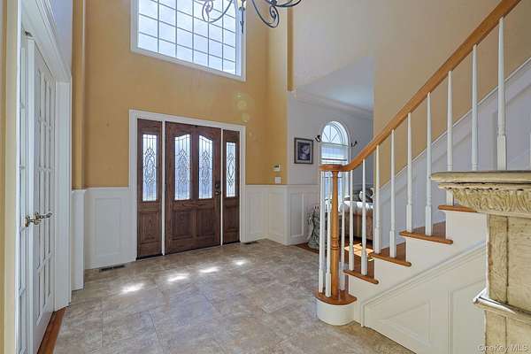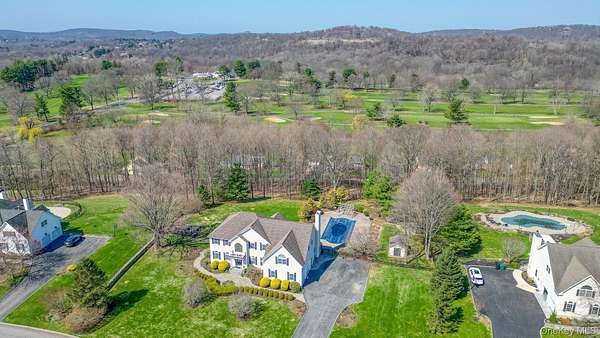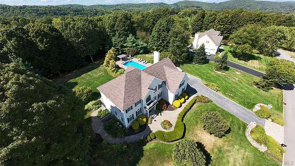 Welcome home to 27 Kaitlin Drive, a beautifully well-maintained and expansive 4/5-bedroom plus den, 2.5-bath residence in the heart of Mahopac, complete with a large in-ground pool and covered pergola. Designed for both everyday living and effortless entertaining, the main level boasts a spacious eat-in chef's kitchen outfitted with high-end stainless steel appliances, including a gas range and premium brands such as Wolf and Sub-Zero. The space offers abundant cabinetry with drawers and built-in spice racks, a large center island, and both formal and casual dining areas. The kitchen flows seamlessly into a spacious Family room highlighted by soaring ceilings, with two skylights that flood the space with natural light, and a cozy gas fireplace. This level also offers exceptional flexibility with a separate living and dining area and a versatile den, ideal for a home office, playroom, or guest space. A powder room and dedicated laundry room complete the main floor. Upstairs, you'll find five generously sized bedrooms, including a private primary suite set on its own wing. The primary retreat features dual closets and a spa-like ensuite bath with stone finishes, a soaking tub, and a separate glass-enclosed shower. Each additional bedroom offers ample space and storage. There is raised panel molding in the two-story entrance hall, formal Living room, and dining Room. The raised panel molding is also throughout the second-floor hall area, with Crown molding throughout. The unfinished basement presents an opportunity to customize additional living space, with rough plumbing for a full bathroom or simply additional storage. Outdoors, enjoy your own private oasis surrounded by beautifully maintained mature landscaping and lush greenery, featuring a large in-ground vinyl pool, expansive paver patios, and a fully fenced backyard, perfect for entertaining or relaxing. Additional highlights include a two-and-a-half-car garage and oversized driveway with plenty of parking. for your guest. Ideally located just moments from Putnam County Golf Course, which offers Friday night events, parks, shopping, dining, and more. This home offers the perfect blend of space, comfort, and lifestyle. Reach out to schedule your private tour today!