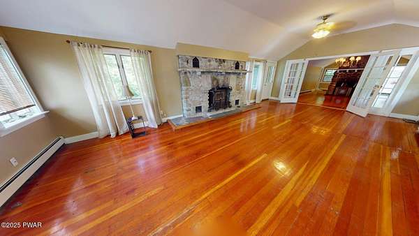A Rare Storybook Escape with Endless Potential Calling all visionaries, investors, and dreamers--welcome to the Treehouse Estate, a one-of-a-kind property carved into the side of a mountain and tucked away on nearly 3 acres of serene woodland. This enchanting estate invites you to restore its timeless charm and unlock its true potential as a full-time residence, vacation home, or lucrative rental retreat. From the moment you arrive, the property feels like something out of a fairytale. A long stone wall frames the driveway, guiding you past a two-car detached garage and into the heart of the estate. Stone walkways and weathered benches dot the grounds, offering peaceful resting spots and a whimsical, almost Alice in Wonderland feel. Inside, you're greeted by the impressive stone backside of a grand fireplace--a true centerpiece that anchors the home's warm, rustic character. Step further and find yourself in a sunroom-like living area flooded with natural light, complete with its own fireplace, perfect for cozy gatherings. The eat-in kitchen, featuring updated appliances, opens through French doors onto a porch overlooking the woods--a tranquil space for morning coffee or evening relaxation. What sets this home apart are its flexible living spaces: A one-bedroom apartment with a private wraparound porch and separate entrance. A studio apartment with its own entrance--ideal for guests, extended family, or rental income. The ''Boat House,'' a spacious bonus room accessed via a breezeway, complete with its own bathroom. Imagine transforming this space into a stunning spa-like retreat with a hot tub or sauna. Outside, a charming (though overgrown) staircase seems to disappear into the woods, offering even more potential for landscaping or secret garden pathways. While the home does need updates and restoration to bring it back to its full glory, its unique features, privacy, and versatile layout make it an extraordinary canvas for anyone with creative vision.