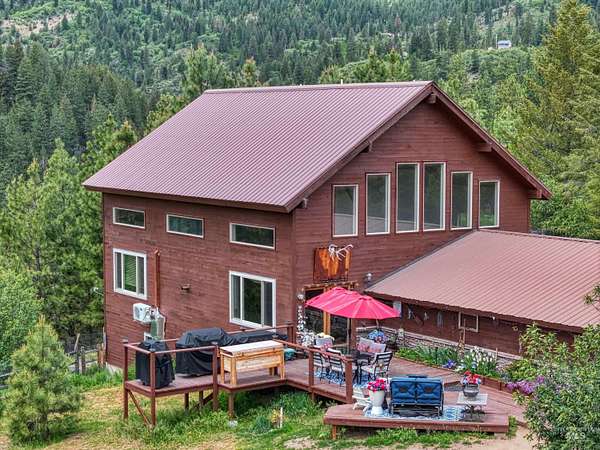 Beautiful home in Idaho's Boise National Forrest, approx. 35-minutes from Boise & 5 minutes to Robie Creek Park at Lucky Peak Reservoir. This updated 2 story home w/walk-out basement is situated on 2 adjacent lots being sold together. Utilize the 2nd lot to build another home, Airbnb, outbuilding or create pasture space if you desire. Ride your horses or ATV to explore this gorgeous mountain retreat and enjoy all it has to offer. See update's list in associated doc's for all the amazing feature/upgrades that include a new: Drainfield, Anderson Windows, LVP flooring, Carpet, Water Heater, SS Fridge & Dishwasher. Has a 21'x34' Shop w/concrete floor, a 10'x22' Lean Two Barn & 12'x14' Hay Barn. Enter into this amazing home and see the stunning vaulted wood beam ceilings with open concept living & floor-to-ceiling stone fireplace. A great place to entertain or just relax while taking in the breath-taking views from all directions. Buyers & Agents to verify all Info.