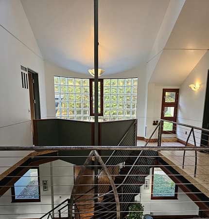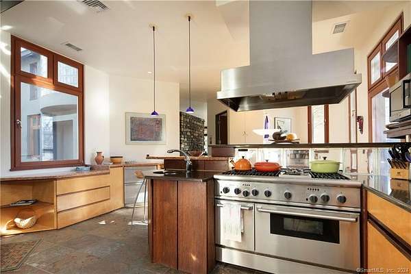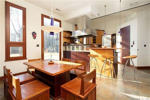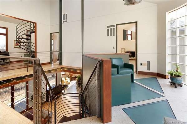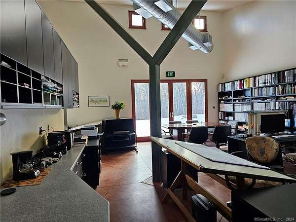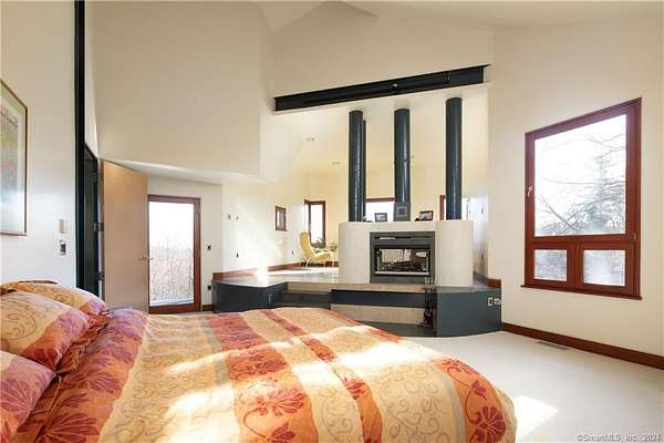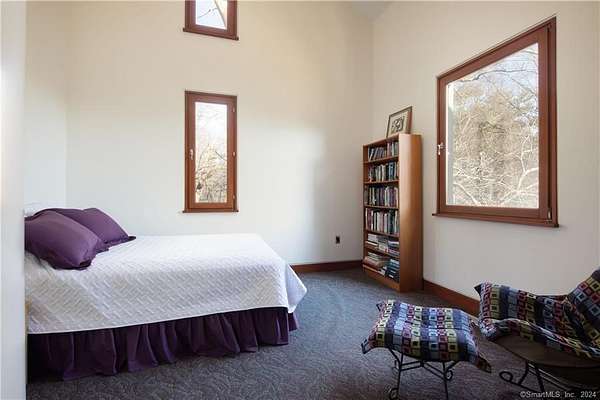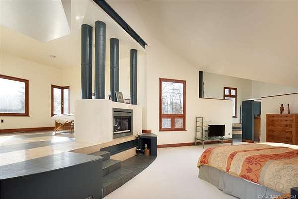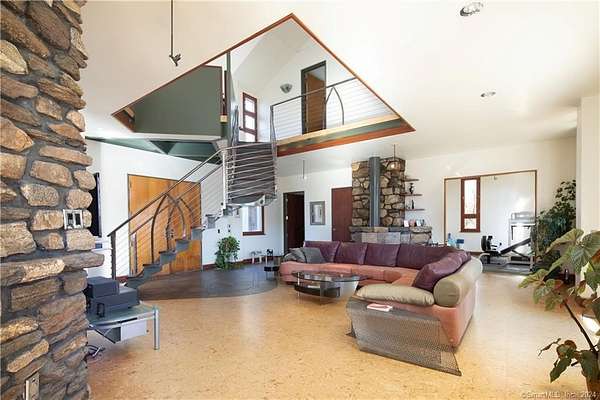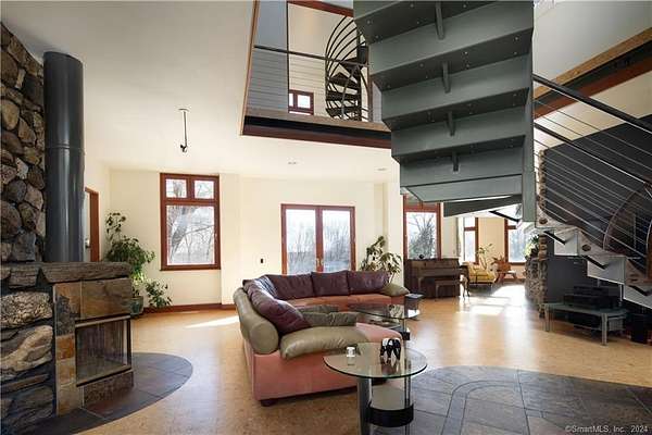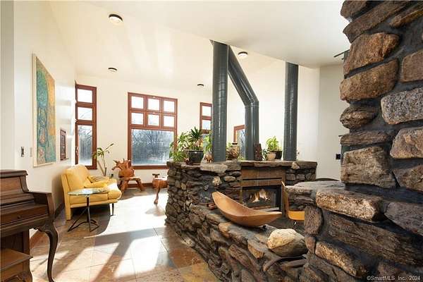 A dramatic, one owner, architect designed and occupied home, with unparalleled attention to quality, detail, and sustainability evident throughout. Sited high on Ridge Road with timeless views to the south and west, all on 3 contiguous parcels (27 Ridge Rd, the 9.30 acre house lot, 23 Ridge Rd, a 1.63 acre buffer lot, and 35 Ridge Rd, a 38.44 acre wood lot with over 700' of road frontage). Geothermal heating & cooling, south facing for passive solar gain, an EPA Energy Star Certified Residence & Studio, a sunny lawn and garden area, organic landscaping, and varied hiking trails through the woods. The home is filled with natural light, enhanced by the open design. The main level features the two story atrium with native granite fireplace & cork flooring, a large chef's eat-in kitchen with marble & granite counters and custom birdseye maple cabinets with purple heart trim, dining room with native stone fireplace, a wonderful bright living room with fireplace & German limestone flooring, and a 1st floor bedroom. The second level includes 3 bedrooms and a study with built-in bookcases, native cherry flooring, & a spiral staircase to the 3rd floor tower. The primary bedroom suite has a raised sitting area with fireplace, German limestone bath & double shower, and a dressing area. The separate Studio is an ideal office or artist's retreat, and there is ample storage with both detached and attached 2 car garages. Words can't do justice to this unique home - come see for yourself!