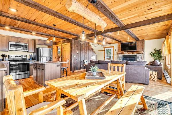 An incredible opportunity to own a turnkey mountain retreat and proven high-performing short-term rental. Generating $120K+ annually, this property offers the rare ability to offset ownership expenses while enjoying your own ski chalet. Designed for comfort and style, the home showcases stunning mountain views and an open-concept living area with contemporary rustic finishes, including barn board accents, exposed beams, and a stone gas fireplace. The kitchen features custom concrete countertops with additional seating at the island ideal for gathering after a day on the slopes. The spacious first-floor primary suite offers ample storage and the convenience of an in-bath washer and dryer. Upstairs, two generous bedrooms and a full bath provide comfortable accommodations for guests. The fully finished daylight lower level with walk-out access adds flexible living space, complete with a wet bar, living area, full bath, and a bonus room currently used as an additional bedroom. Outdoor living shines in the warmer months with a thoughtfully designed patio and firepit, perfectly positioned to take in the surrounding mountain views. With a strong rental history and excellent owner-use functionality, this home truly offers the best of both worlds.