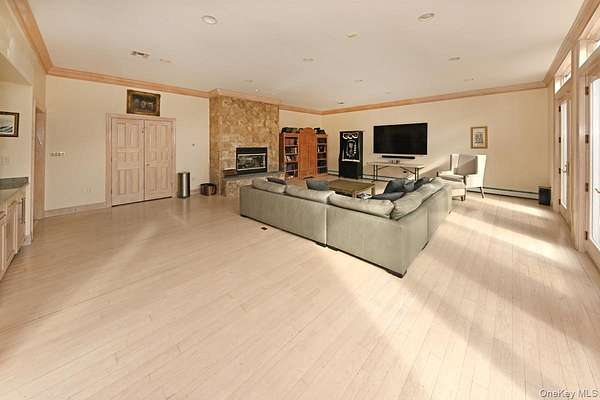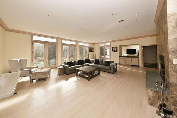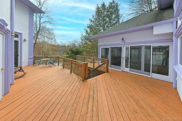 Welcome to this stunning Suffern rental! Nestled on a quiet cul-de-sac, this expansive 7-bedroom, 5.5-bathroom home offers the perfect combination of comfort and style. The first floor features a living room, dining room, and kitchen with a sliding door leading to a large deck overlooking the backyard, ideal for entertaining, plus a bedroom and 1.5 bathrooms. The second-floor primary bedroom boasts a luxurious master suite with a private en-suite bathroom, while four additional bedrooms and three full bathrooms provide ample space for family and guests. The lower level offers an additional bedroom and full bathroom, perfect for guests or extended living. Sunlight pours through huge windows, highlighting the high ceilings, open foyer, and elegant chandelier. The kitchen is a chef's delight with light brown cabinetry, light stone counters, and recessed lighting, seamlessly connecting to the living spaces. This home also features a brick fireplace, large deck, in-ground pool with gated fence for saftey, while the spacious backyard offers endless opportunities for outdoor enjoyment. Other highlights include stone tile flooring throughout and a one-car garage. Perfectly tucked away for privacy, yet conveniently located near major routes for commuters.