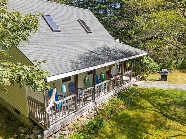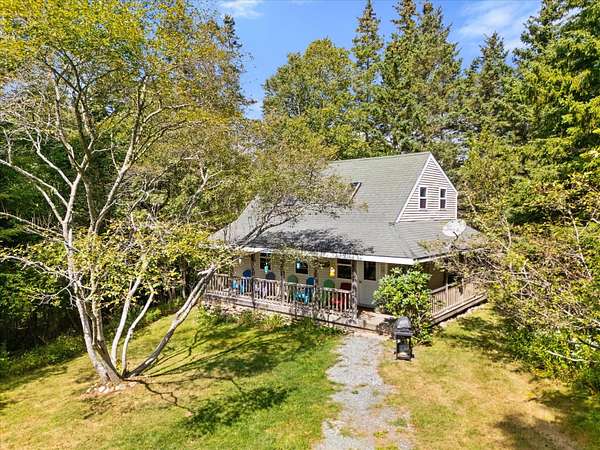 Est $2,144/mo"New Drone Photos." Beautiful stick-built home with wood interior in a private setting on Deer Isle. This home was designed and built in 2005. The large tree-filled lot has 5.76 acres of room for all your needs. There are two bedrooms and one full bath upstairs, a great room, and a lovely kitchen downstairs with new refrigerator. Skylights and ceiling fans make cooling and heating this home energy efficient. This home has been used as a yearly rental, and the owner is retiring from the rental business.