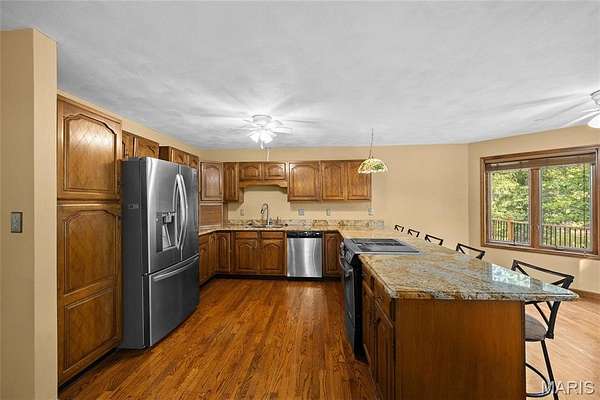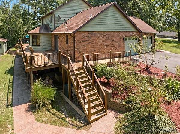 *new price of this Lake Retreat* Do not miss this spacious 4 bedroom, 3.5 bath home with wonderful lake views. Beautiful front door greets you as you enter this well-built residence. 2 x 6 Exterior wall construction for energy efficiency. Main floor offers spacious living room, with vaulted ceiling and fireplace, dining area, kitchen with breakfast bay, all with lake view and access to oversized rear deck for outdoor dining and entertaining. Main floor primary suite also provides tranquil views private bath and ample closet space. Half bath and laundry/drop zone complement main floor. Sweeping staircase leads you to the upper level offering loft area, 2 bedrooms and bath. Finished walkout lower level has oversized family room, separate kitchen, recreation room, bedroom with private entrance bath with shower, and storage room. Property includes a 16 x 16 Insulated workshop/storage with A/C unit. 13 x 17 concrete & block deck with drain at water's edge. Handicap accessible deck from driveway to rear of home. Stamped concrete sidewalk to rear patio and lower entertaining area. Recently serviced asphalt driveway that affords extra parking. All situated on a 3.9 Acre lake lot. Seller is including a paddle boat and 2-man fishing boat for your enjoyment. Call today to tour your next happy place. Access to St. Louis and Scott Air Force Base.