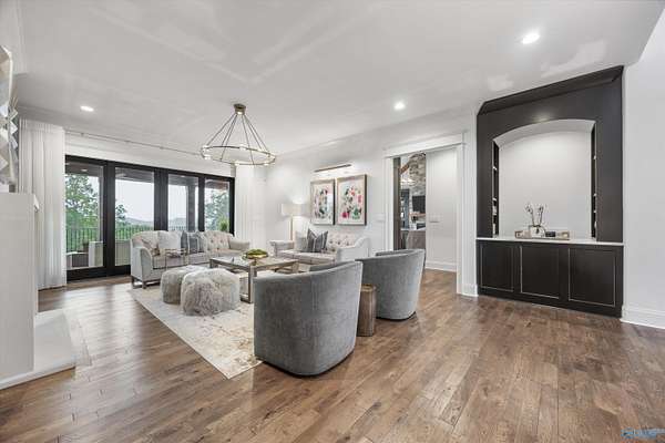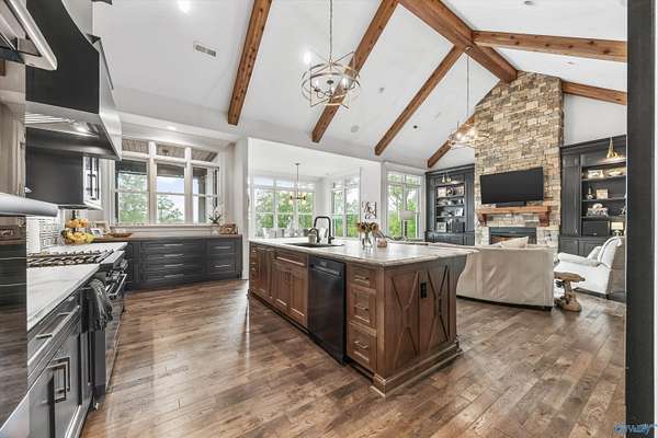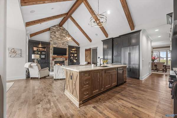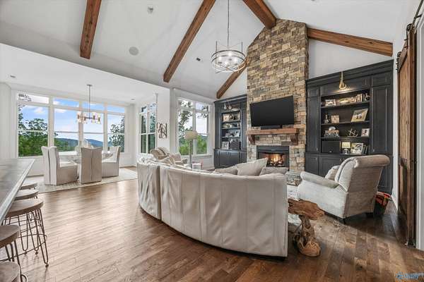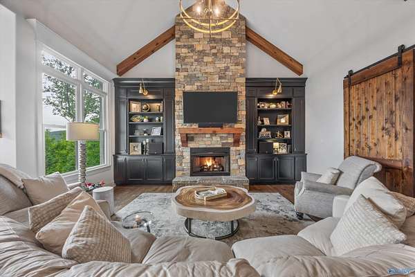 Luxury living w/spectacular views from every level in this stunning home on 8+ acres in the prestigious Watson Grande Preserve at McMullen Cove where the views are your art work. The expansive layout features vaulted & beamed ceilings, intricate trim detail & designer finishes. Chef's kitchen w/massive island, hidden pantry, black stainless Dacor appliances,&custom cabinetry opens to brkfst surrounded by windows & hearth room w/ FP. Main lvl porch w/FP & retractable screens. Lavish owner's suite offers a spa-like bath & grand closet. Guest suite on main level. Walk-out Basement w/ media room & huge rec room, wet bar leading out to porch w/FP & a gunite resort style pool.