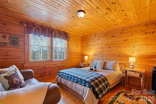 Escape to this charming mountain cabin retreat, perfectly designed for relaxation and rejuvenation. Nestled in the peaceful mountains, the cabin offers breathtaking natural surroundings and a private spa unit featuring a sauna, hot tub, and shower-ideal for unwinding after a day of hiking or exploring. Cozy yet thoughtfully appointed, the cabin blends rustic mountain charm with modern comforts, creating a serene getaway. Whether you're soaking under the stars, enjoying crisp mountain air from the deck, or simply relaxing indoors, this tranquil retreat offers the perfect balance of comfort, privacy, and natural beauty. Conveniently located just 15 minutes from Main Street Waynesville and 30 minutes from Asheville, this property is ideal as a personal mountain escape, a high-demand vacation rental investment, or even a unique primary residence.