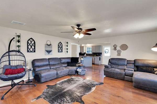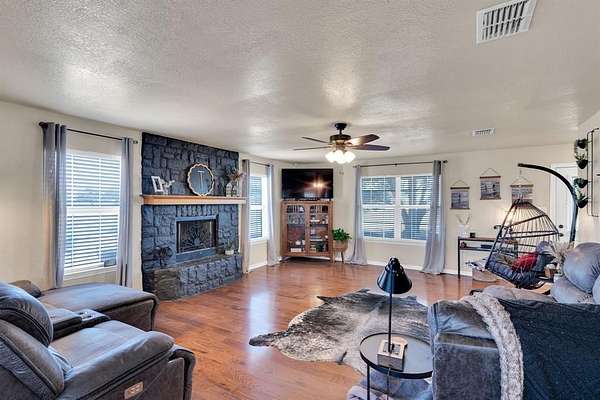 NO CITY TAXES HERE! Charming three-bedroom, two and a half bath retreat nestled on over two acres of open land! Step inside to a welcoming foyer with a graceful staircase, the primary suite tucked to your left, and a sunlit living room with a striking rock fireplace to your right. Move forward into a cheerful breakfast nook and a kitchen designed for both style and function, featuring a breakfast bar, gleaming granite countertops, stainless steel appliances, and abundant storage. The primary suite offers a private ensuite bath and a spacious walk-in closet. Upstairs, discover two additional bedrooms and a full bathroom, while downstairs boasts a convenient half bath and a roomy utility area with built-in cabinetry. Step out back to a covered patio overlooking a vast backyard, perfect for gatherings or quiet evenings. A powered 16x15 workshop and a two-car carport complete the package. This home truly has it all--come see it and make it yours today!