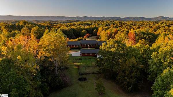 Welcome to 270 Coleman Trail, a custom-built estate nestled on over six serene acres with picture perfect sunsets. The 5,100+ square foot residence offers six bedrooms and four full baths, with the majority of living space thoughtfully designed on one level. The original design blends timeless craftsmanship with functional simplicity. Inside, the spacious living and dining areas are ideal for entertaining, complemented by a centrally located fireplace perfect for gathering at the end of the day. In addition the center of the home is where you will find the kitchen, dining room, office and four-season sunroom which overlooks the backyard and mountain views--perfect for enjoying the changing seasons. Flanking the center of the home are two additional areas that house bedrooms, bathrooms and additional living spaces. The home's construction showcases exceptional quality and must be seen to be appreciated. Designed with efficiency, comfort and wellness in mind, the geothermal heating and cooling system, whole home generator, slate roof as well as the home's form-block concrete construction and solid surface flooring throughout provides a healthy, clean environment--ideal for anyone with sensitivities or those seeking a toxin-conscious lifestyle. This property offers endless possibilities--perfect for those envisioning a private retreat, small homestead or multi-generational living. The home also presents great potential for off-grid living with a few thoughtful additions. Outdoor living is equally impressive, featuring mature trees, and a view easement that frames the surrounding mountains. Additional structures include generous garage space and areas ideal for workshop or hobbyist use. With orchards and gardens ready to be revitalized, this property offers both privacy and potential. Located minutes from the charming downtown of Travelers Rest, the Swamp Rabbit Trail, and convenient access to Greenville amenities, this estate combines quiet country living with comfort and convenience. Call listing agent for a private tour!