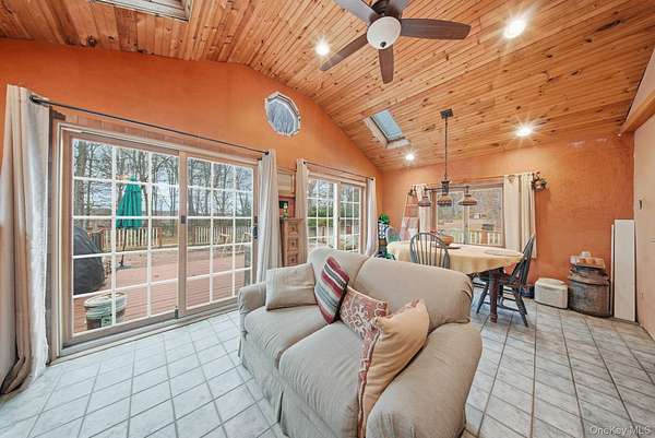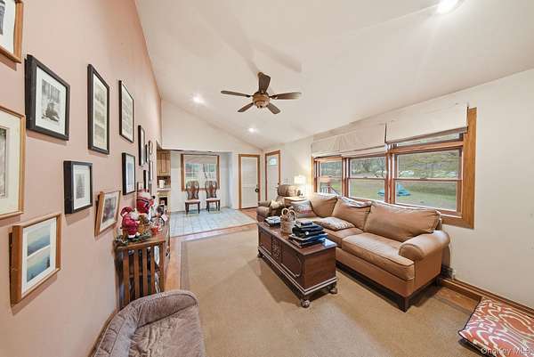 Middletown opportunity that pulls double duty. Walk through the front door and feel how easy life becomes when comfort and possibility meet in one place. This move in ready three bedroom two bathroom home welcomes you with vaulted ceilings, warm wood detail, and a bright living room that opens through glass doors to your deck. The kitchen surrounds you with wood cabinetry and generous workspace so cooking, gathering, and entertaining feel natural and effortless. As you step outside, notice how your mind begins to unwind. A spacious yard, inviting patio, and wooded backdrop create the feeling of a private oasis, a place where you can exhale at the end of the day and actually relax. Now imagine this same address working for your future as well as your lifestyle. While the property is currently used as a residence, the zoning also allows for commercial use. That means you can live here, explore a live work setup, or hold it as a flexible investment that can evolve as your goals change. There is no downside, only options waiting for you to choose the one that fits best. You are close to shopping plazas, dining, and major commuter routes with convenient transportation options to New York City, so it is easy to enjoy both Hudson Valley living and access to the city. Picture the way this property can support the life and business you want, then send a message now to schedule your private tour while it is still available.
