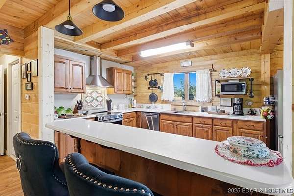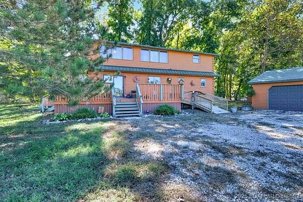 Over 11 Acres + 780 ft of shoreline on Lake of the Ozarks! Located on the 7 Mile Marker of the Little Niangua, relaxation and opportunity await! Featuring a gorgeous remodeled log home and a 28x30 detached shop, this one checks all of the boxes! Walk in to an updated kitchen with an open layout to the dining and living room. Vaulted, cathedral ceilings make it feel so spacious and give so much character! The main level also includes one of the two master suites and laundry with a powder room. Upstairs has a loft that functions as one of the bedrooms or could be used as an office, craft room, etc. The second master suite and also another full bathroom are located on the upper level as well. Step out on the wrap around deck and enjoy the surrounding nature. The view of the lake and also the bluffs are truly remarkable! The acreage is suitable for livestock, baling hay, or even to be developed. With NO hoa, it has potential to be a fantastic Airbnb with the Little Niangua Camp Ground boardering the property and nearby attractions such as Old Kinderhook and Lake Valley golf courses nearby plus Ball Parks National. Exceptional fishing and great locatoin for paddleboards and kayaks!