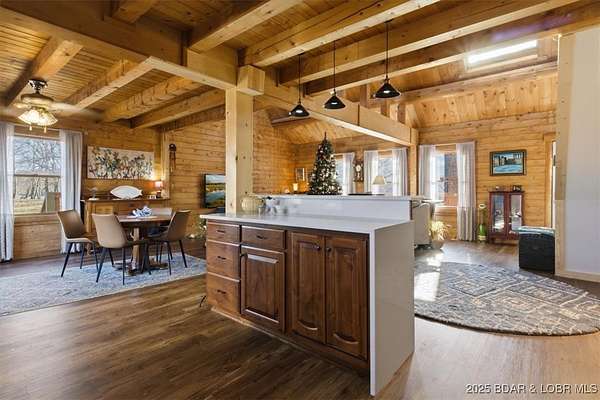 Over 11 Acres + 780 ft of shoreline on Lake of the Ozarks! Located on the Little Niangua, relaxation and opportunity await! Featuring a gorgeous remodeled log home and a 28x30 detached shop, this one checks all of the boxes! Walk in to an updated kitchen with an open layout to the dining and living room. Vaulted, cathedral ceilings make it feel so spacious and give so much character! The main level also includes one of the two master suites and laundry with a powder room. Upstairs has a loft that functions as one of the bedrooms or could be used as an office, craft room, etc. The second master suite and also another full bathroom are located on the upper level as well. Step out on the wrap around deck and enjoy the surrounding nature. The view of the lake and also the bluffs are truly remarkable! The acreage is suitable for livestock, baling hay, or even to be developed. With NO hoa, it has potential to be a fantastic Airbnb with the Little Niangua Camp Ground boardering the property and nearby attractions such as Old Kinderhook and Lake Valley golf courses nearby plus Ball Parks National. Exceptional fishing and great locatoin for paddleboards and kayaks!