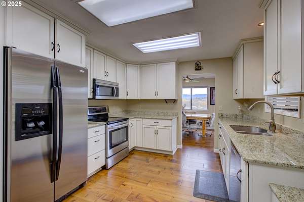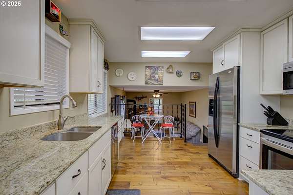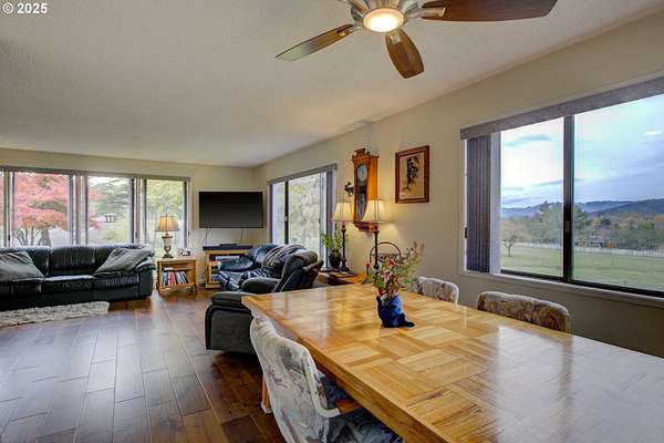 270 Glenwood Ct, Roseburg, OR - Conveniently located in the desirable Fisher Rd area, this 3-bedroom, 2.5-bathroom home offers a country feel while still being close to town. Set on 5.65 flat, usable acres, the property blends comfort and functionality with natural beauty. Inside, you'll find a spacious Casabella kitchen featuring granite countertops, stainless steel appliances, modern finishes, and abundant storage. Beautiful engineered hardwood floors flow throughout the main level, complemented by two gas fireplaces with striking brick that creates a warm and inviting atmosphere. A designated laundry room with sink and a half bath are conveniently located just off the garage-perfect for cleanup before entering the rest of the house. Enjoy breathtaking views of the Callahan Mountains from your living spaces or the wood deck, and take advantage of both front and backyard patios crafted with pavers-ideal for outdoor entertaining. The fenced and cross-fenced property is perfect for horses, livestock, gardening, or added privacy, supported by Umpqua Basin water and a private well dedicated to irrigation. Practical amenities include an oversized 2-car garage with double garage doors, RV/boat parking that ensures ample space for your recreational vehicles, a carport for extra parking or storage, plus a 20x30 shop with a small bonus room offering flexibility for hobbies, a home business, or additional guest space. A brand-new HVAC system and furnace provide year-round peace of mind. Blending space, comfort, and country charm, 270 Glenwood Ct is a property you won't want to miss!