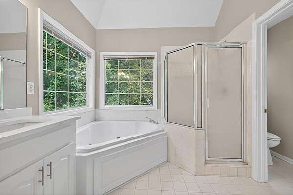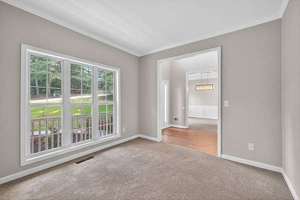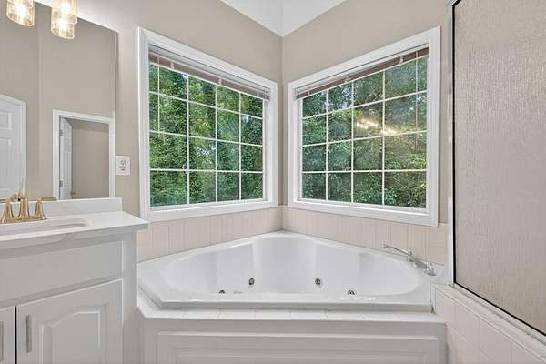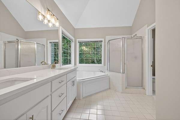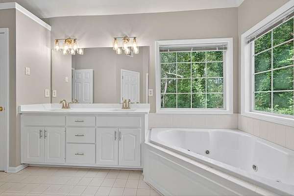 Move-in ready two-story home on a private 1.53-acre wooded lot in Hambridge Court with three bedrooms and three bathrooms (two full baths upstairs and a powder room on the main) plus possible fourth bedroom in the basement. Fresh paint, new flooring, and stylish lighting throughout. Kitchen features quartz counters, stainless steel appliances, and updated finishes. Upstairs, the vaulted primary suite includes a spacious bath with double vanity, garden tub, tiled shower, and XL walk-in closet. Two secondary bedrooms share an updated hall bath. Finished flex room with closet on the lower level makes a perfect office, gym, media room, or fourth bedroom. Enjoy wooded views from the large deck, plus a two-car garage, partial finished basement, newer roof, serviced HVAC (2025), and Collins Hill schools. Convenient to I-85, Hwy 316, and Mall of Georgia. Call today to view, and ring in the New Year in your beautiful new home in Lawrenceville!