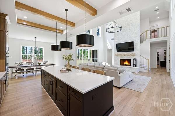 Discover 270 Indian Creek in Good Hope, Georgia-a modern farmhouse on 5 beautiful acres that truly makes a statement and stands out from typical new construction. With high-end finishes, thoughtful design, and space to grow, this home offers more than you'll find in a standard build. Step through the double front doors and you're immediately greeted by soaring ceilings and a stunning floor-to-ceiling stone fireplace that anchors the main living space. Every detail has been carefully curated, with custom touches that bring warmth, character, and texture throughout. The open-concept layout flows seamlessly into a show-stopping kitchen featuring a massive quartz island, stainless steel Thermador appliances, and plenty of space to gather and entertain. The owner's suite is conveniently located on the main level and offers a spa-like bath complete with a walk-in shower and freestanding tub-perfect for unwinding at the end of the day. In addition to the owner's suite, there is a separate full bedroom and bathroom on the main level, offering flexibility for guests, family, or a home office setup. Upstairs, separate from the other bedrooms, you'll find a private guest suite complete with its own bedroom and full bathroom-ideal for visitors or multi-generational living. There is also easy access to attic storage, offering plenty of space for seasonal items and organization. Set on approximately 5 acres, there's ample room to create your dream outdoor setup-whether that's a pool, a shop, or both. Enjoy the privacy and flexibility of acreage living while still being conveniently located to Monroe and Athens. If you've been searching for something that feels elevated, intentional, and move-in ready without the wait-this one checks all the boxes. Come experience it for yourself!