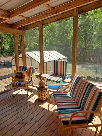 This is more than a place to live, it is a whole lifestyle. Enjoy starting or ending your day on the expansive, screened front porch listening to nature and relaxing. Or hang out in the back where you can stay comfortable on the screened porch. A new 12x12 utility room was recently added (not counted in square footage). Grow all your favorite plants in the front garden and keep them thriving during the cold months in the greenhouse. The metal shipping container offers additional storage for all your extra indoor or outdoor equipment. You will have peace of mind knowing the metal roof is just a couple of years old. Home features vinyl windows and 2-inch blinds throughout. Come enjoy this beautiful, rural setting with almost 5 acres while still being able to jump on I20 in just a couple of minutes.