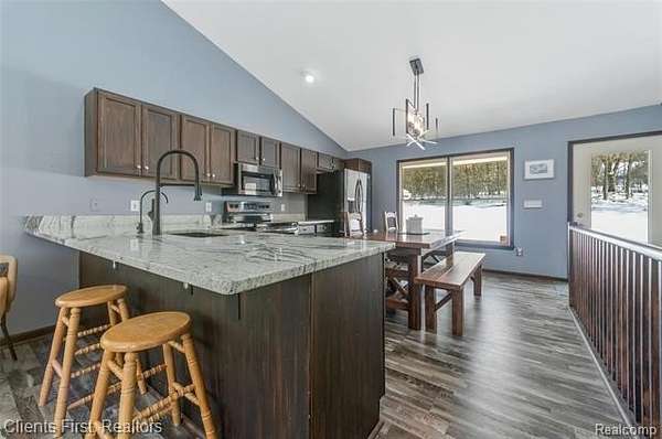 Nestled in a peaceful, nature-filled setting, this unique property offers a blend of privacy, charm, and modern updates. A mature tree line surrounds the home, creating a serene backdrop complete with a creek, abundant wildlife, and beautiful landscaping featuring pink and white magnolia trees, an apple tree, and thriving berry bushes (blueberry, strawberry, blackberry, and raspberry). Outdoor living shines with stone walkways, a spacious back deck, a tree fort, and a half-court basketball area--great for recreation and entertaining. Enjoy the country feel with a nearby alpaca farm and animal sanctuary, yet remain less than 15 minutes from shopping and dining in downtown Oxford and downtown Ortonville. Inside, opposing windows provide wonderful natural light and cross-breezes, creating an open, airy feel. Ceiling fans in every bedroom add comfort. The home also features newer kitchen appliances, a newer roof, and a newer HVAC system. Key upgrades include natural gas service with a "T" for possible future inline generator install (2023), radon mitigation system (2023), whole-house water filtration, reverse osmosis drinking water at kitchen sink (2023), and a septic system inspected, repaired, and pumped in 2023. Plumbing updates: Brass fittings replacing aged galvanized components. The garage includes a wood-burning stove. Additional highlights include a home gym, tool shed, well-maintained dirt road access, and a gravel driveway with large concrete parking area. A rare opportunity to enjoy comfort, nature, and functionality in one beautiful setting!