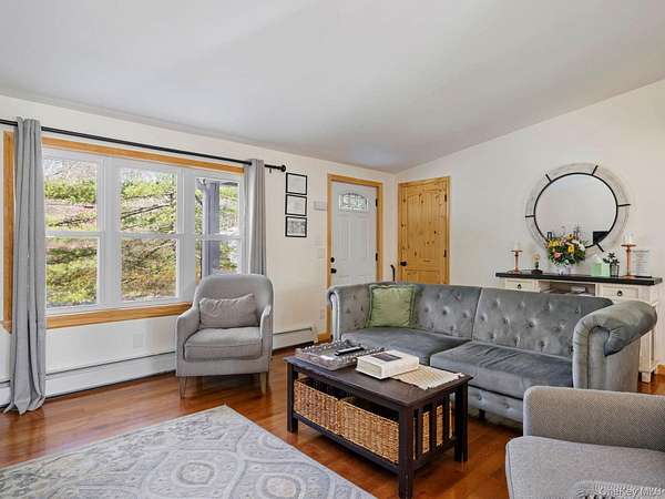 Don't miss the opportunity to experience the peace and beauty of country living in this charming 3-bedroom ranch nestled on Ridgeview Road in the heart of the Hudson Valley. Set on a gently sloping lot with expansive views of the area's renowned natural, wooded landscape, this home provides the perfect balance of privacy and convenience. Inside, you'll find three spacious bedrooms and three full bathrooms, providing ample room for everyone. The open living and dining areas are ideal for both everyday living and entertaining. The kitchen, recently updated in 2019, is equipped with modern finishes, while the updated bathrooms offer a clean updated feel. The mostly finished basement offers additional living space or storage, with the potential to make it your own. Step outside onto the large deck, perfect for summer relaxation or hosting friends, or enjoy the warmth of the firepit on cooler evenings. Recent updates include new windows, hardwood floors, an updated kitchen and bathrooms, and a new roof in 2021-ensuring peace of mind for years to come. The detached metal garage adds extra storage space and a fantastic workshop area for hobbies or projects. This property is a nature lover's dream, with easy access to Sundown National Forest, Minnewaska State Park, Mohonk Preserve, and the O&W Rail Trail for endless outdoor activities. For a taste of local culture, enjoy nearby dining, live music, and entertainment at spots like Arrowood Farms, Westwind Orchard, Mill & Main, Skate Time, and Shadowland Theater. Don't forget to visit the Bradford Graves Sculpture Park or Kelder's Farm for even more local charm. Green thumb? The nearby Catskills Native Nursery is perfect for cultivating your own landscaping vision. Whether you're seeking a peaceful full-time residence or a weekend retreat, this home is an unparalleled escape in one of the most scenic regions of the Hudson Valley. Schedule a tour today and let the serene beauty of this property speak for itself.