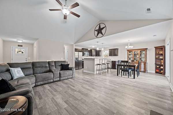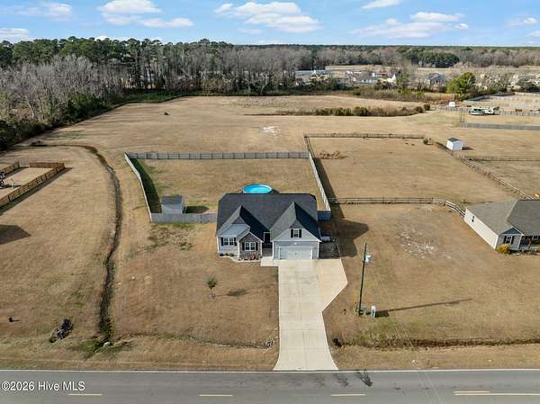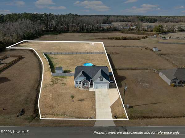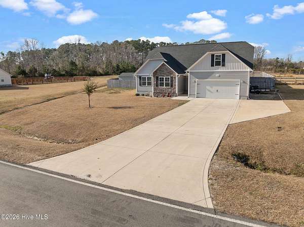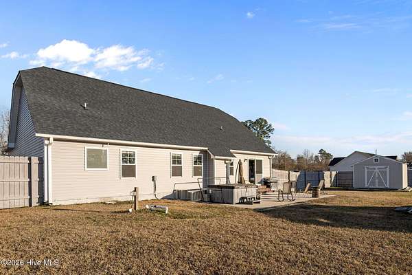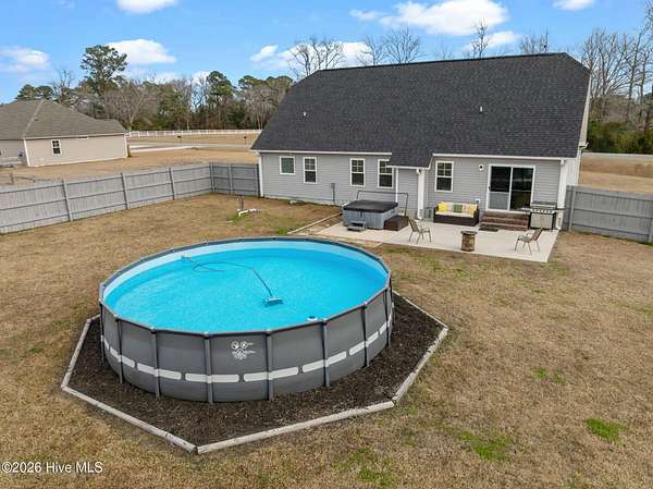 Welcome to this beautiful upgraded home that feels better than new construction! Situated on a spacious 1.76-acre lot with NO HOA, this property offers privacy, space, and versatility. The owners have added numerous upgrades, including a professionally graded yard, extended driveway for extra parking, and an expanded back patio perfect for entertaining. Outdoor features include an above-ground pool, hot tub, partially fenced yard, and a 12x12 storage shed. Inside, this 3 bedroom, 2 bathroom home boasts an open-concept living area with vaulted ceilings, split floorplan, and a spacious kitchen that flows to the dining area and patio. A bonus room provides flexible space for a home office, playroom, or game room. The owner's suite is a private retreat with a walk-in closet and bathroom featuring double vanities, separate shower, and soaking tub. The location is just as appealing! It's nestled in the Verona area with an easy commute to Jacksonville and Sneads Ferry. You'll be conveniently close to New River Air Station and Stone Bay, and just 20 minutes from North Topsail Beach. Schedule a showing today to see the upgrades, land, and peaceful surroundings this home has to offer!
