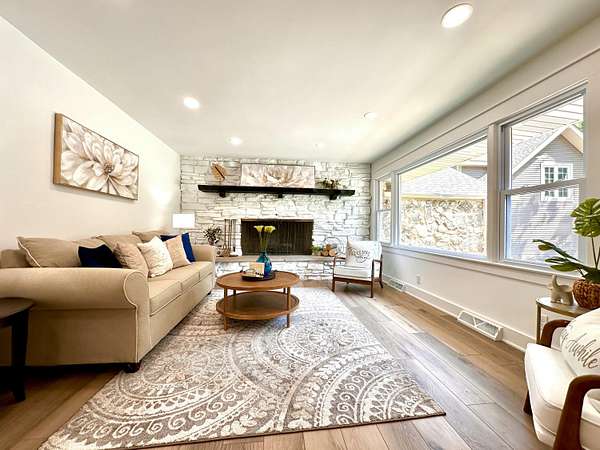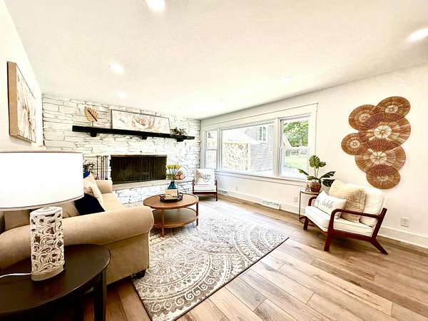 - 2 or More Fireplaces, Gas Fireplace, Natural Fireplace, Simulated Wood Floors, Walk-In Closet(s)