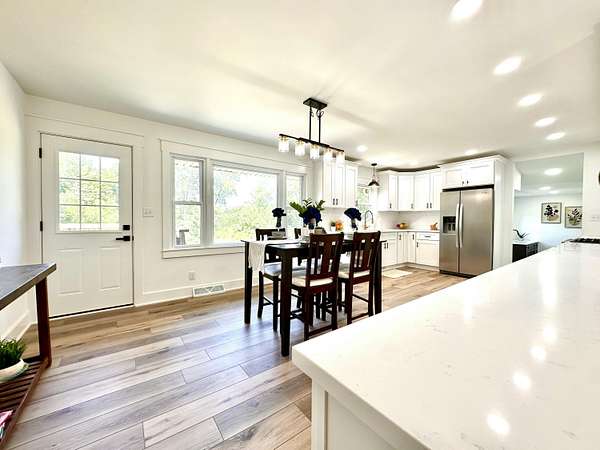 Welcome to your dream home! This updated & expansive 5 bdrm, 3.5 bth home w over 3,000+ sq ft is nestled on 3.2-acres w private pond & backs to Richard Bong State Rec Area! Plenty of room for your toys & storage in attached 2.5 car & detached 4 car garage w expandable attic (stubbed utilities)! This property checks all the boxes - Acreage, privacy, updated home, extremely low taxes, and room for all your toys! Featuring outdoor gathering spaces & versatile floorplan for potential in-law accommodations! Main floor features abundant natural light, 4 bdrms and 2.5 bths, w Mstr ensuite and walk-in closet, cozy fireplace, well-appointed kitchen w modern SS appliances, ample cabinetry & generous solid-counters! Access the over-sized deck from Kitchen. Walk-out LL offers large Rec rm w wetbar.
