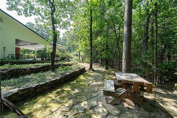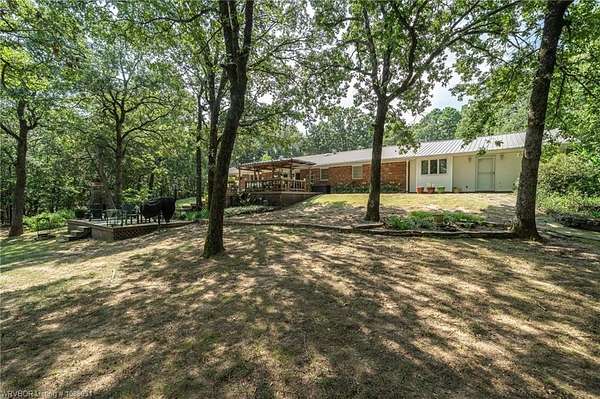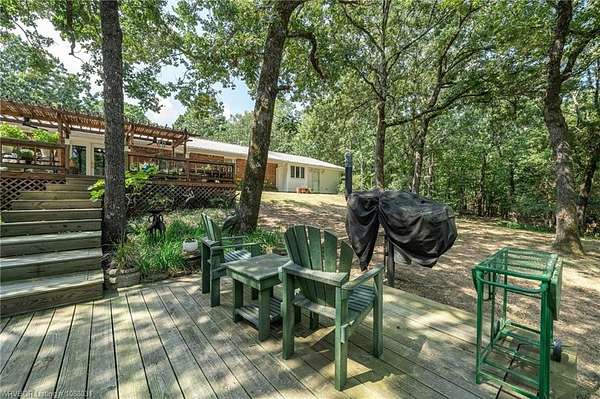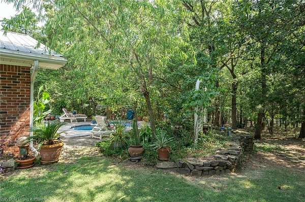 Tucked away on 5 park-like acres with mature trees, abundant wildlife, and winding trails, this beautiful 4 bedroom, 2 bath property offers a rare combination of privacy, space, and everyday convenience. Located just minutes from town, approximately 30 minutes to Fort Smith, and an easy drive to Tulsa, you can enjoy peaceful country living without sacrificing accessibility. Inside, the thoughtfully designed split floor plan offers both comfort and functionality, featuring a spacious primary suite complete with a relaxing jetted tub. The kitchen is both stylish and practical, showcasing Silestone countertops with bullnose edges and pull-out drawers for easy organization. An inviting eat-in kitchen is complemented by a separate dining room, making the home ideal for both everyday living and hosting family and friends. Outdoor living is truly exceptional, with a large deck overlooking the beautifully landscaped grounds, a cozy outdoor fireplace for year-round enjoyment, and an in-ground pool that creates your own private oasis. The space is perfect for entertaining, complete with a combo grill and smoker for outdoor cooking. A welcoming front porch provides the ideal spot for morning coffee or evening relaxation. The property is well-equipped with a safe room for added security, a 2-car garage plus a 2-car carport, a greenhouse with a propane heater for extended growing seasons, and three storage sheds-offering plenty of space for hobbies, tools, and outdoor equipment. For those who love the outdoors, the location is hard to beat with close proximity to the Ouachita National Forest for hiking, hunting, and 4-wheeling, nearby golf courses, and excellent fishing opportunities at Wister Lake and Cedar Lake. This property offers space, privacy, and lifestyle-everything you need to enjoy the best of country living with modern-day convenience.