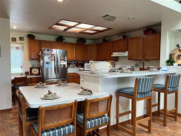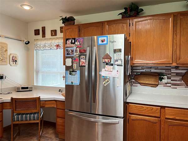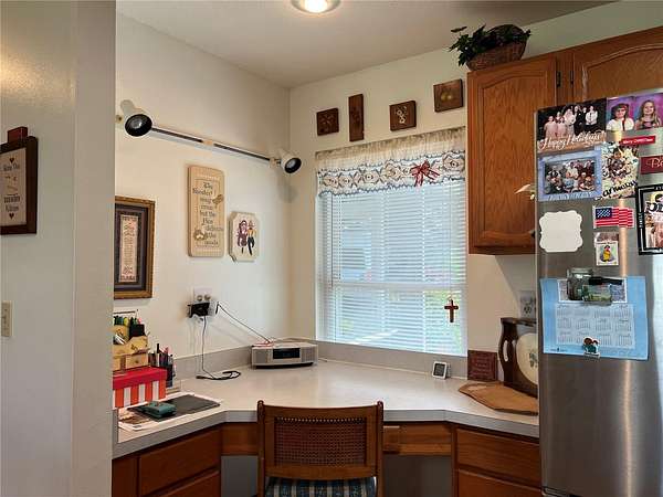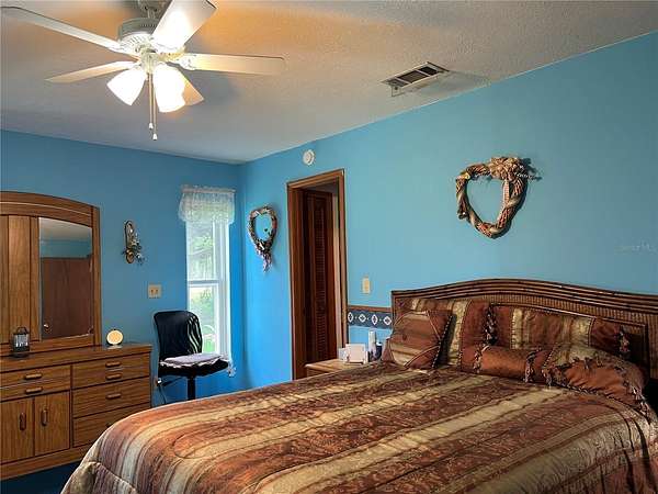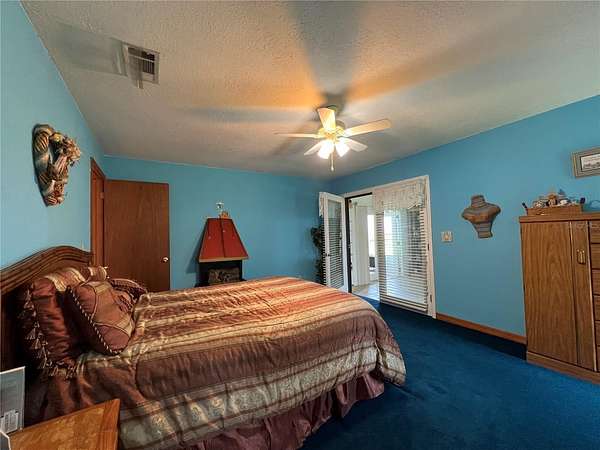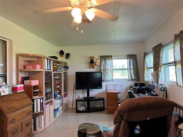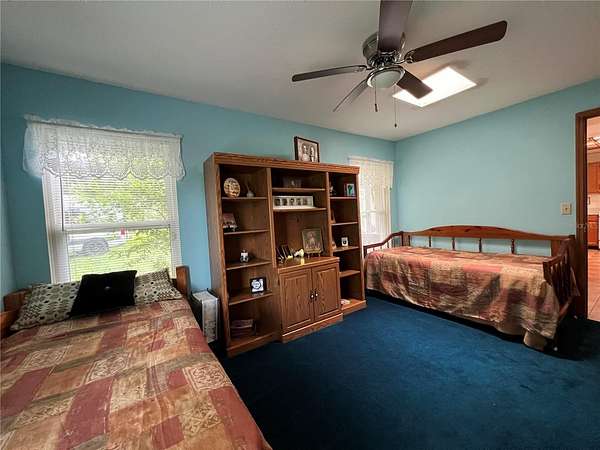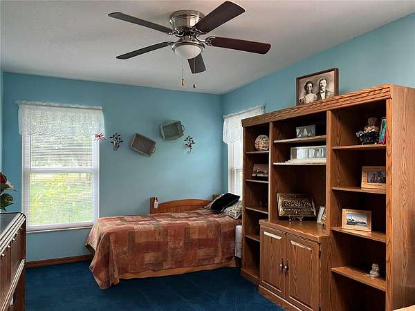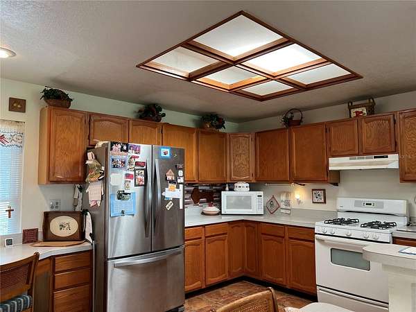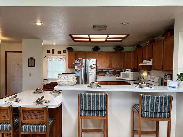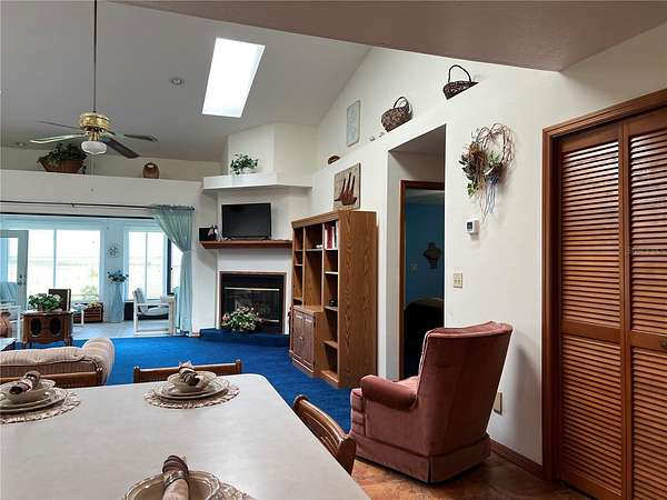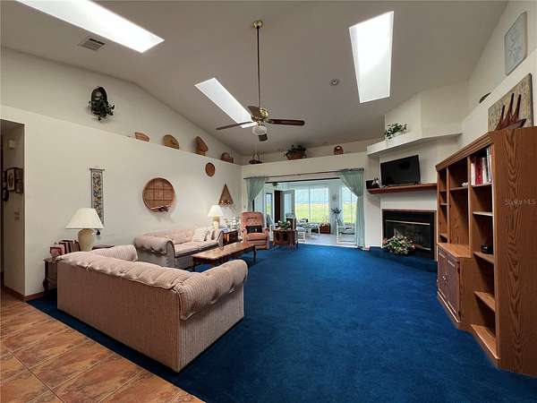 Welcome to this one-owner lakefront home on Lake Toho that has been meticulously maintained! Travel down the grassy, cypress-tree lined driveway until it opens up to the inviting and beautifully landscaped front yard and the house. Enter the home through the screened front porch and see the spacious kitchen on your left. All appliances will stay, including the gas range, washer, and dryer. There are lots of wood cabinets, a built-in desk, a high breakfast bar by the sink, and an attached dining room table with storage below. The home features an open floor plan, with plenty of skylights throughout, to really let in the light. There is a gas fireplace in the living room. The living room opens through the triple sliding glass doors to the Florida room with Oh, What a view! Lake Toho! Wildlife, birds and bunnies abound. On either side of the Florida room are rooms that now serve as an office and a TV room, but could easily be converted to bedrooms if needed. There are four bedrooms, one has an electric fireplace. Two bedrooms have walk-in closets (one with cedar walls), one bedroom has French doors. There are two full baths, one on each side of the house, and there is another full bath in the garage. Drop-down stairs attic access is in the garage, and also in the cedar closet. There is a Whole House Fan which can keep you cool several months of the year, saving on AC bills. The roof was replaced 3 years ago. There is a canal on the north side of the property that leads to a small boat basin, just needs a little weed clean-up. The yard has space for your RV, boat, whatever big toys you have. Come home to quieter times and live on the lake!