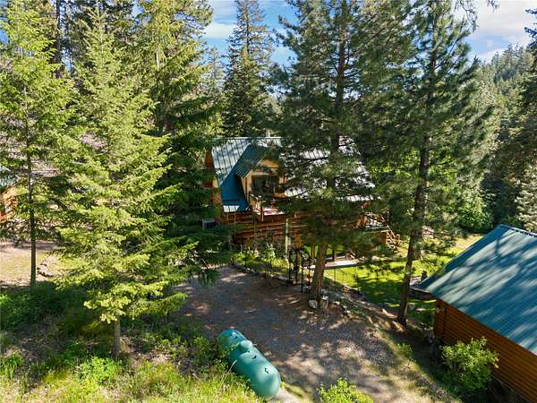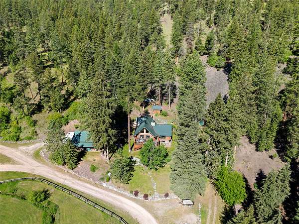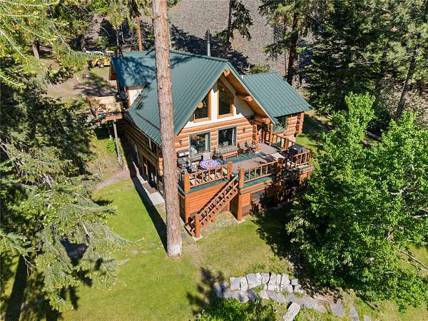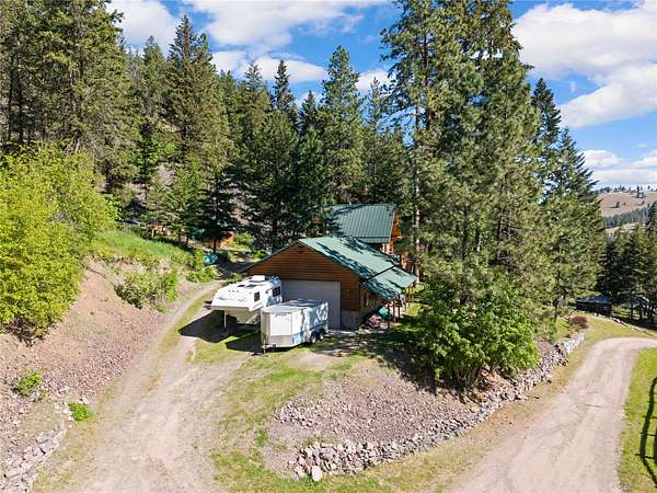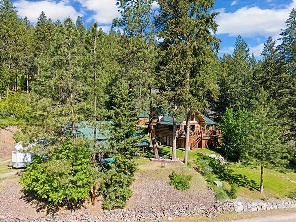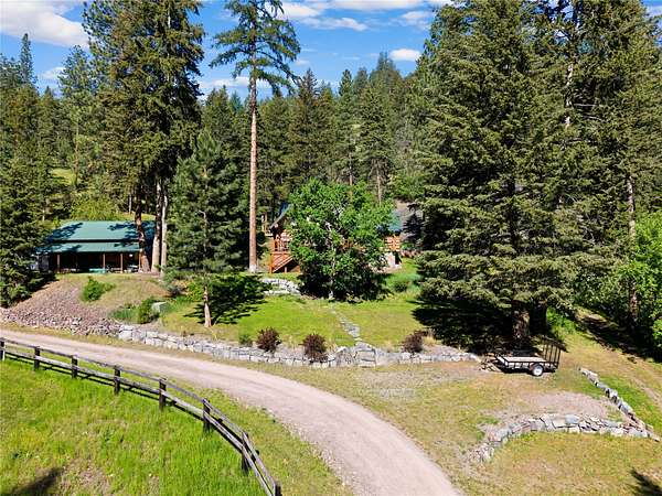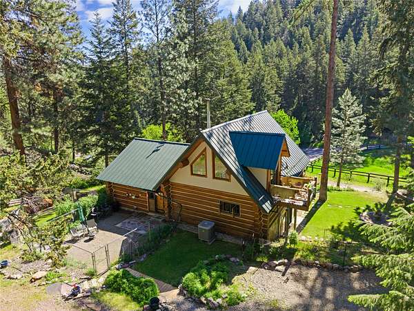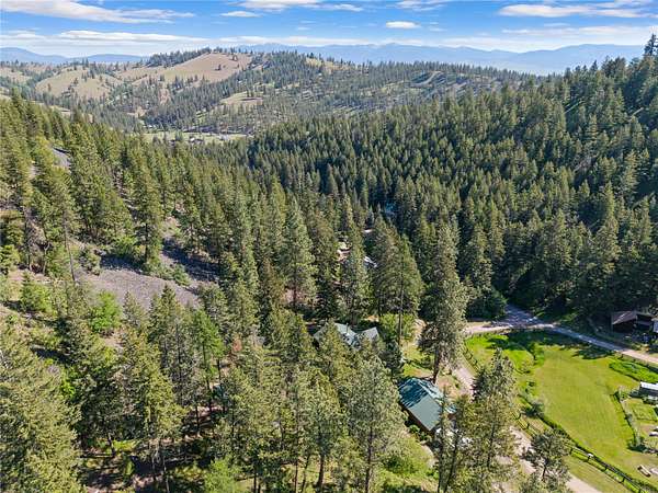 Welcome to your private Montana retreat at the end of Lyon Creek Road-where a flawless log home awaits on 17 pristine acres. Surrounded by forest, peace, and endless recreation, this property is a rare blend of luxury, privacy, and versatility. Inside, this 2-bedroom, 2.5-bath home features a bonus room and a walk-out basement. Hickory cabinets, hardwood floors, and breathtaking log and stone finishes speak to the craftsmanship throughout. The dual furnace system with A/C ensures efficient year-round comfort, and a strong 15 GPM well, propane, and electric utilities meet every practical need. Step outside and enjoy a built hiking trail leading right from your backyard, winding through your own acreage. At the top of the 17 acres, you'll find an additional build site perched on Cedar Ridge, offering incredible panoramic views-ideal for a guest house, investment opportunity, or future dream build. A large detached garage includes a heated shop addition, perfect for projects, storage, or hobbies. The home has been kept in exceptional condition with regular maintenance, leaving no detail overlooked and making it truly move-in ready. This MUST-SEE property offers unmatched beauty, utility, and potential-all just minutes from Missoula. Please see home for sale next door for an opportunity to buy both, MLS#:30050530