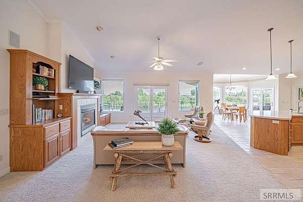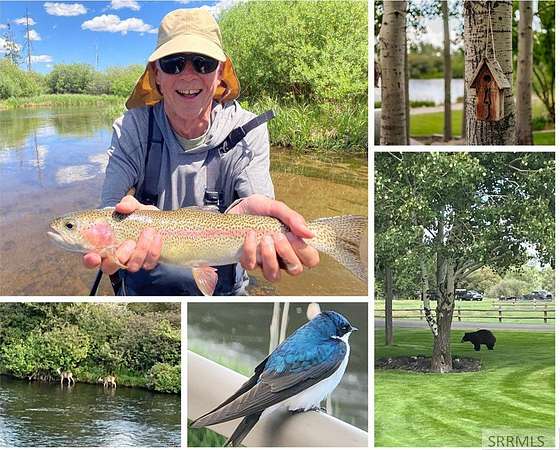Nestled along the BANKS of HENRY'S FORK, this extraordinary 2.7-acre RIVERSIDE RETREAT offers BREATHTAKING VIEWS and endless amenities. The main house was strategically designed to ensure magnificent river and landscape views throughout. The gourmet kitchen, crafted to accommodate a crowd, is ideal for entertaining, while the luxurious owner's suite features direct access to spectacular river views and a spa-like en-suite bath, providing a private sanctuary. With 3-5 spacious bedrooms and 5 bathrooms, comfort and privacy are guaranteed for all family members or guests. The unfinished daylight basement, featuring direct river access, presents a unique opportunity to create additional customizable living space. Adjacent to the main house is a 3,400ft GUESTHOUSE, which includes a spacious 36'x26' SHOP equipped with every feature a professional craftsman would appreciate, half-bath & garage. Additionally, 2 APARTMENTS, each with RIVER VIEWS and RIVER ACCESS, are perfect for extended family, guests, or rental income opportunities. THIS PROPERTY IS A RARE FIND, combining the allure of riverfront living with modern amenities and ample space for all your needs. Whether you are seeking a serene family home or a versatile retreat with INCOME POTENTIAL this riverside gem is waiting for you