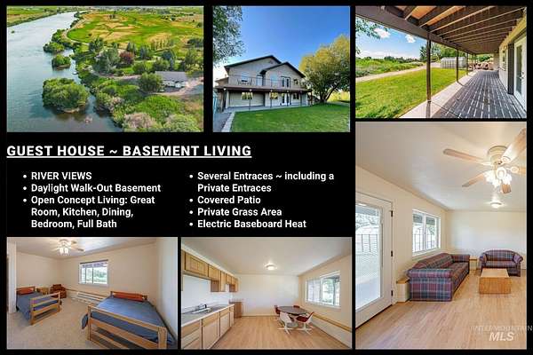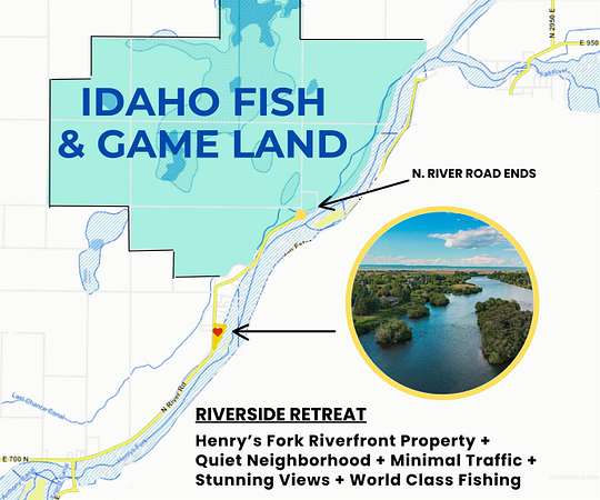 HENRY'S FORK FLY FISHERMAN HAVEN! Own a rare stretch of world-class trout water with this extraordinary 2.7-acre riverfront retreat. Wake to the soothing sounds of the river and step directly into the water to cast for trophy-sized trout. Spend your days immersed in nature, surrounded by birds, waterfowl, deer, and other wildlife. Take in breathtaking sunrise and sunset views from the home, yard, or expansive deck(s). The 5,920ft2 main home features 4 bedrooms (5 if you don't need a fly-tying room) and 5 bathrooms. Designed for both comfort and longevity, the open-concept layout offers main-level living and captures stunning river views from every primary living space; including the owner's suite. The unfinished walk-out basement provides the perfect opportunity to customize and expand. The ADU, affectionately known as The Guest House, adds 2,352ft2 of living space with dual kitchen capabilities and separate entrances-ideal for guests, multi-generational living, or rental income. A fully equipped 36'x26' woodworking shop w/ 1/2 bath offers space for serious craftsman-level projects (or income potential) along with an additional garage. Whether you're seeking a full time family home or an income-producing retreat, this one-of-a-kind riverside haven delivers the ultimate fly fishing lifestyle.