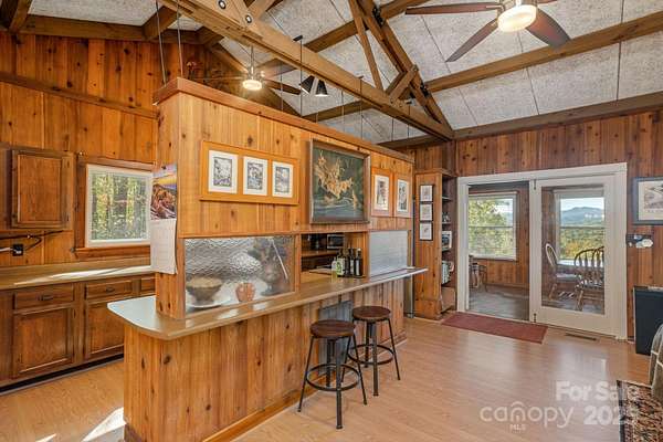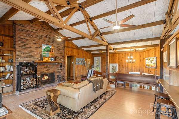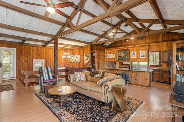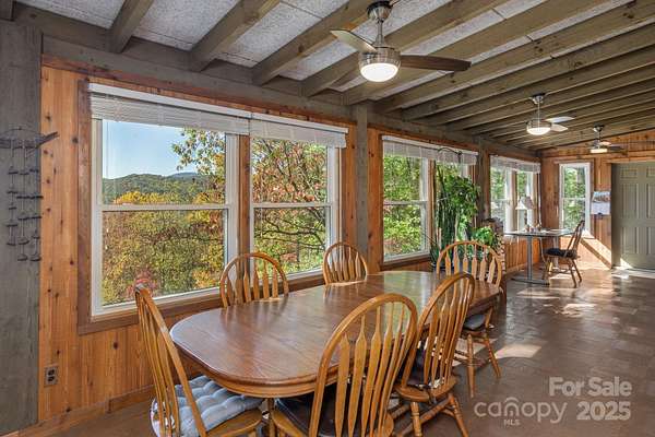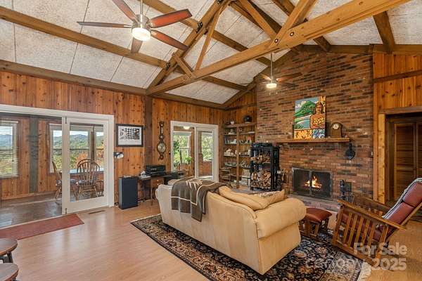 Welcome to 2700 Old Toxaway Road - a true mountain retreat with breathtaking long-range views and updates that make life easy. Designed to soak in nature's beauty from nearly every room, this 2-bedroom, 2-bath home (with a flexible lower-level bonus space ideal as a bunk room/den/game room) offers comfort, style, and serenity on 1.75 private acres. This house truly has lots of character! Inside, you'll love the open-concept living area with a stone fireplace, sunroom with walls of windows, and a spacious kitchen perfect for entertaining or quiet mornings with a cup of coffee and mountain living. Exposed beams and natural light add rustic charm throughout. Recent improvements include new exterior paint, gutter guards, drainage upgrades, HVAC service, radon system, new appliances, and freshly cleaned fireplace and septic - all the important work has been done for you! Enjoy evenings overlooking the ridges, or gather around the wood stove on cool mountain nights. Ownership is subject to the Ridge Haven 99-year renewable leasehold agreement, offering access to community amenities and trails. This home is move-in ready and radiates peaceful mountain living - whether you're looking for a full-time residence, second home, or a restful getaway close to Brevard, Lake Toxaway, and Pisgah National Forest.
